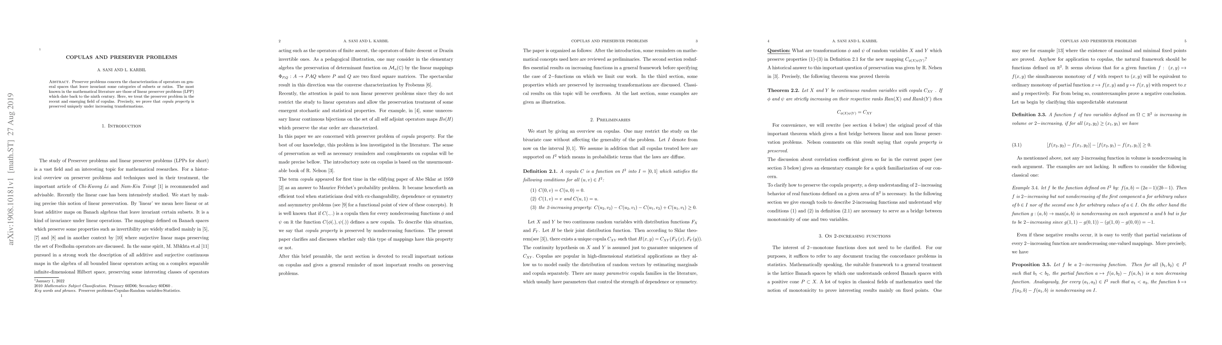 This paper addresses the preserver problem in the context of copulas, demonstrating that the copula property is uniquely preserved under increasing transformations, contributing to the understanding of linear preserver problems in the emerging field of copulas.