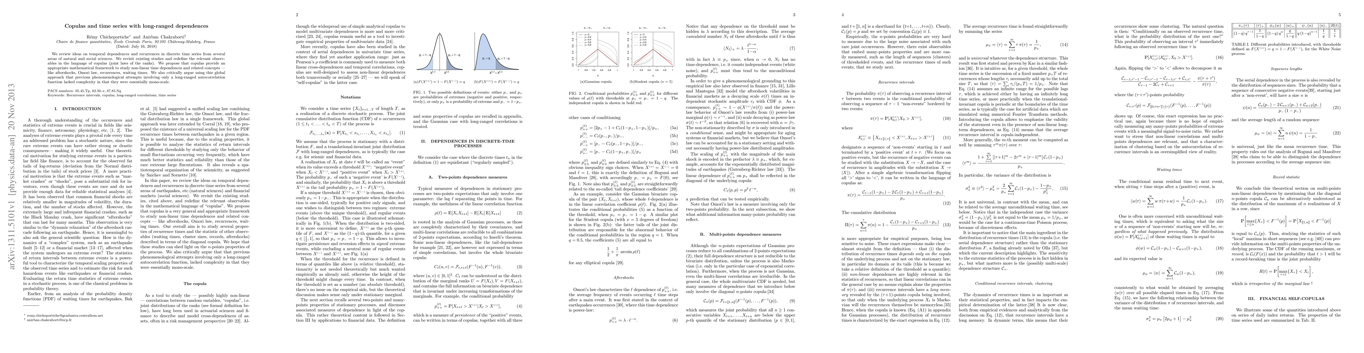 The paper introduces copulas as a powerful tool for studying non-linear temporal dependences and recurrences in various time series, providing a unified framework for analyzing phenomena like aftershocks, Omori law, recurrences, and waiting times.