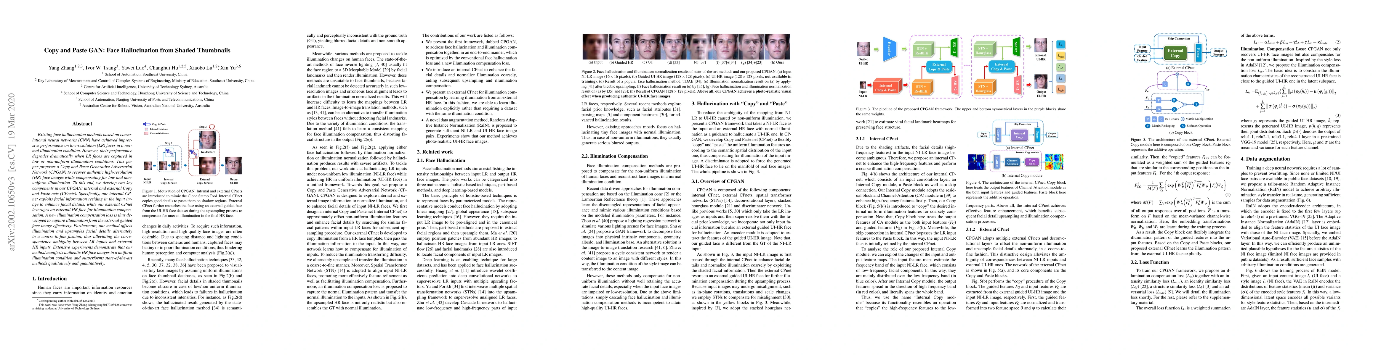 This paper introduces a Copy and Paste Generative Adversarial Network (CPGAN) to enhance low-resolution face images under low or non-uniform illumination. The CPGAN uses internal and external Copy and Paste nets to recover high-resolution faces, with a new illumination compensation loss for effective illumination adjustment. The method outperforms existing techniques both qualitatively and quantitatively.