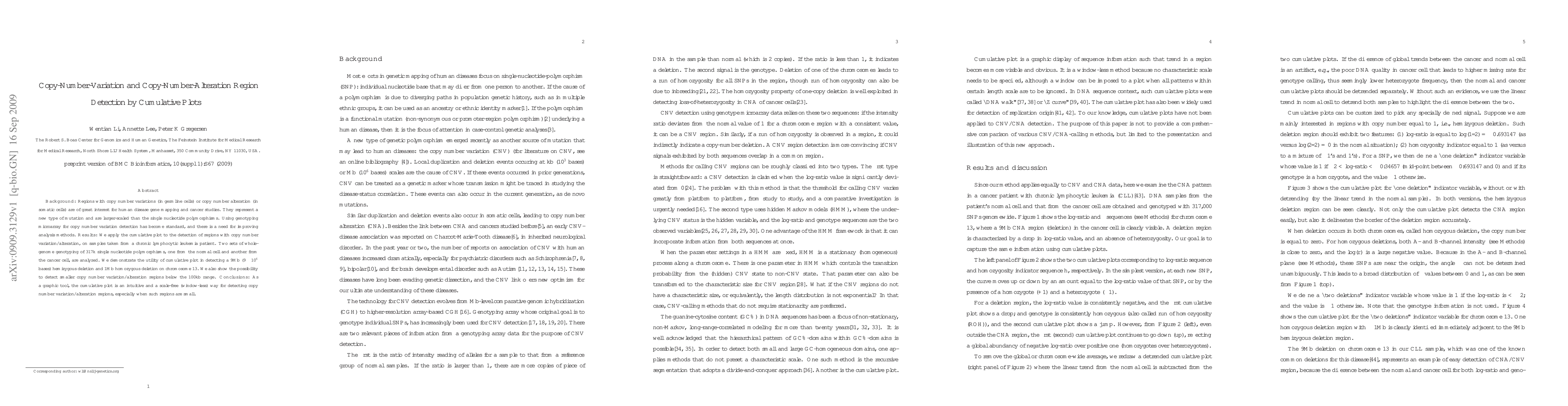 This paper proposes using cumulative plots to detect copy number variations and alterations in genomic data, demonstrating its effectiveness on chronic lymphocytic leukemia samples. The method successfully identifies large deletions and smaller regions, showing its utility for cancer studies.