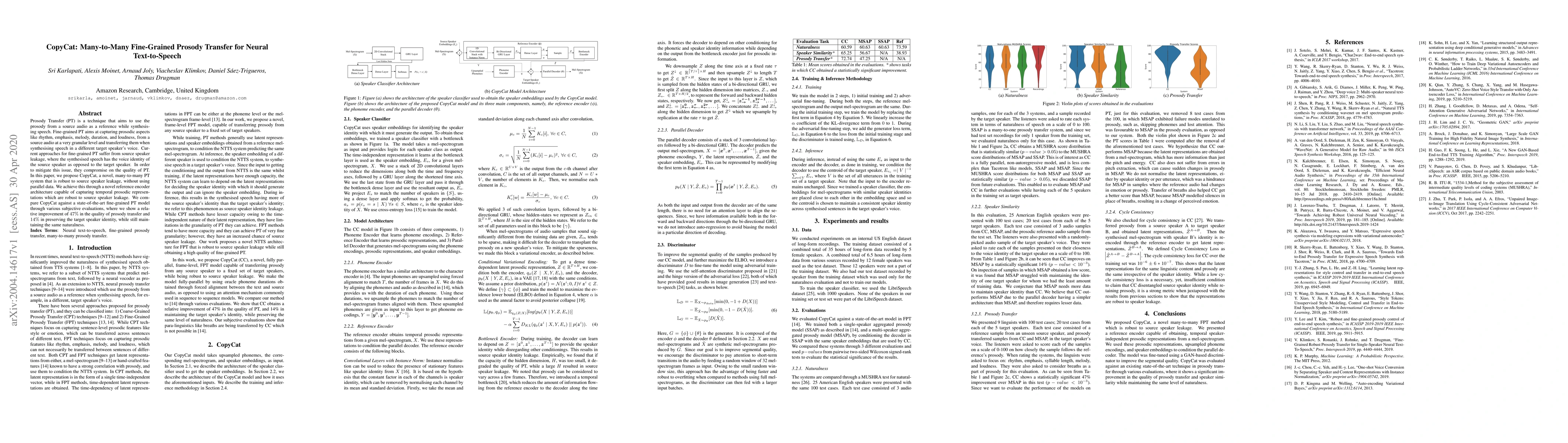 CopyCat is a novel many-to-many prosody transfer system designed to mitigate source speaker leakage in fine-grained text-to-speech synthesis. It employs a robust reference encoder architecture to achieve a 47% improvement in prosody transfer quality and a 14% better preservation of target speaker identity compared to existing models.