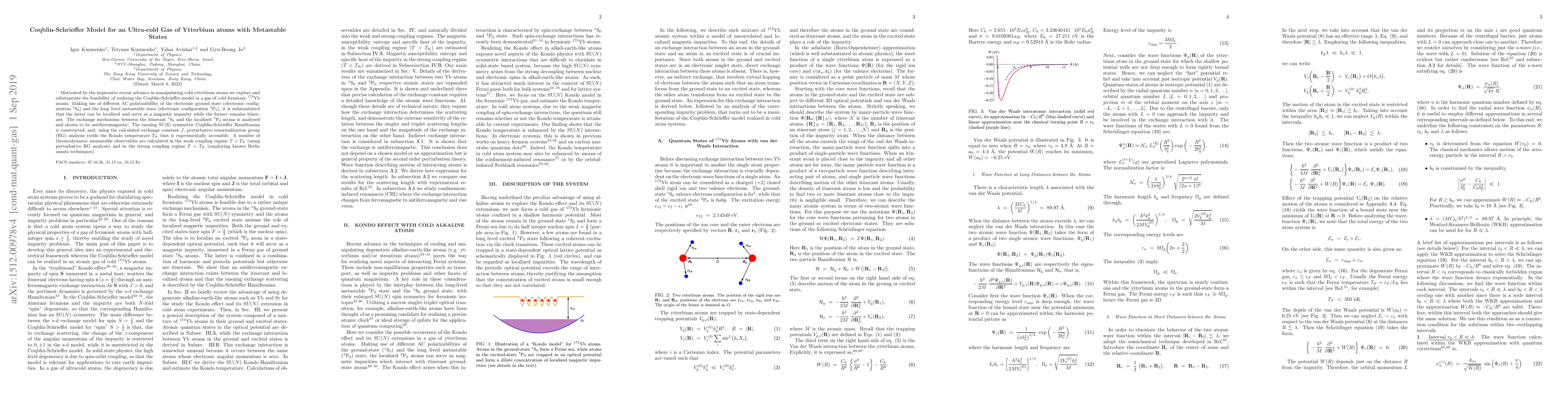Motivated by the impressive recent advance in manipulating cold ytterbium
