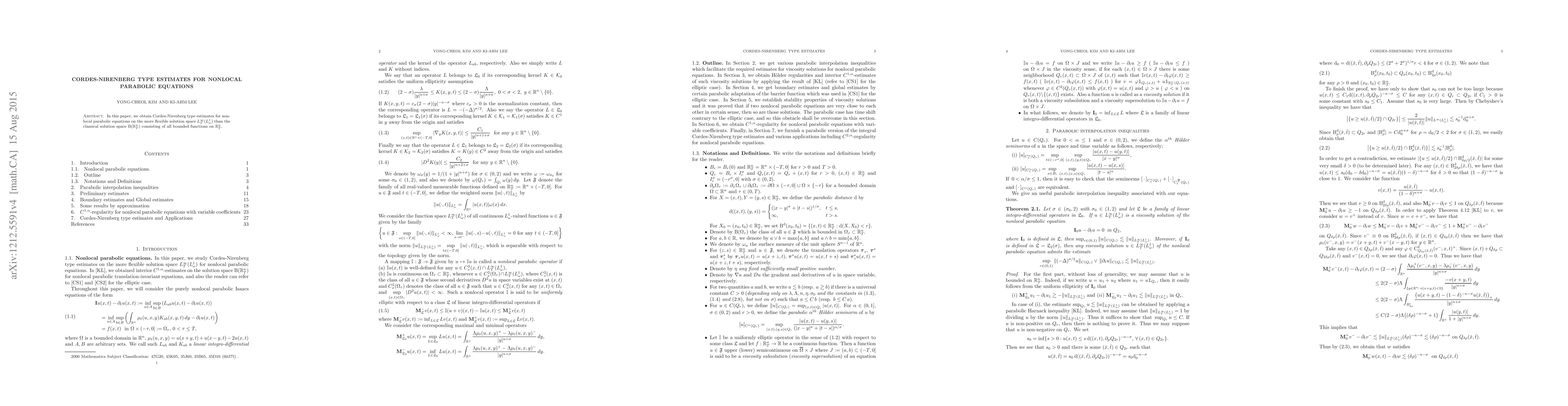 Summary: This paper establishes Cordes-Nirenberg type estimates for nonlocal parabolic equations within the solution space $L^{\iy}_T(L^1_{\om})$, offering a more flexible framework compared to the classical bounded function space $\rB(\BR^n_T)$.