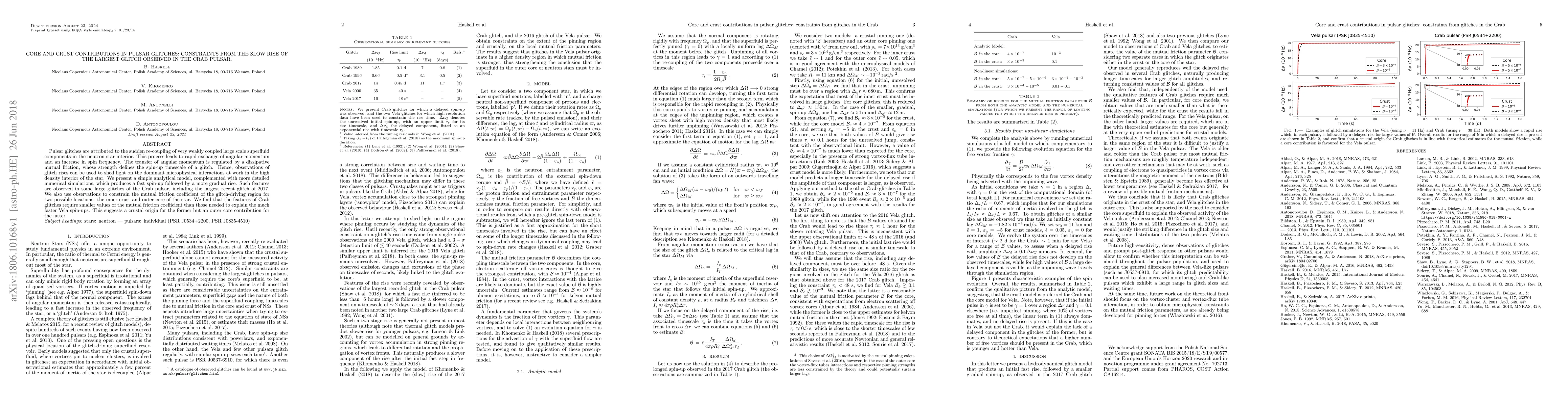 This paper investigates the rise characteristics of the largest Crab pulsar glitch, proposing an analytical model and numerical simulations to understand the underlying microphysical interactions. It finds that the observed slow rise suggests a crustal origin for the Crab glitch, contrasting with the faster Vela spin-ups which may involve outer core contributions.