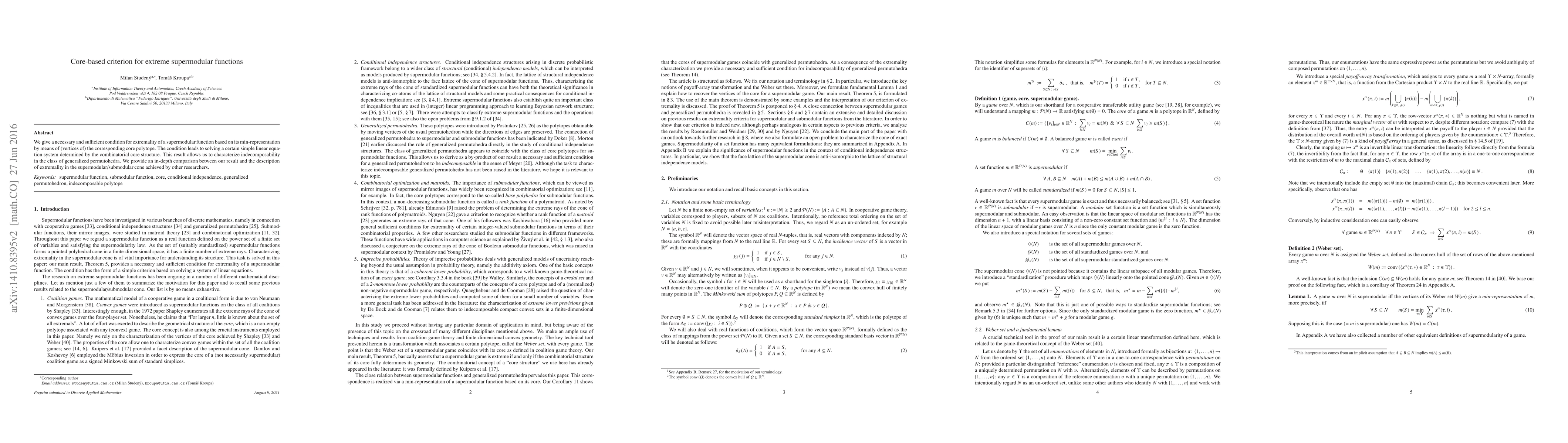 This paper presents a necessary and sufficient condition for the extremality of supermodular functions, based on their min-representation via the core polytope's vertices. It characterizes indecomposability within generalized permutohedra and compares its findings with existing descriptions of extremality in supermodular/submodular cones.