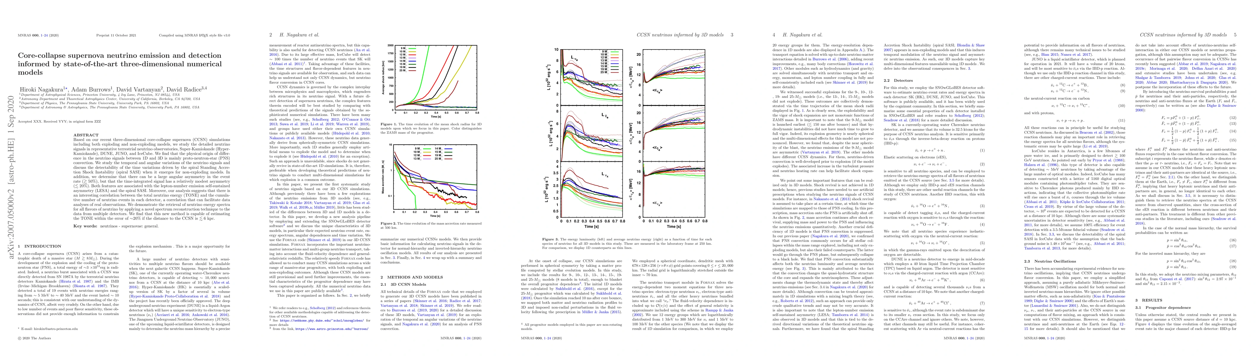 Researchers used 3D numerical models to study neutrino signals from core-collapse supernovae, finding that physical differences in the signals come mainly from proto-neutron-star convection, with potential implications for detecting time variations driven by a shock instability.