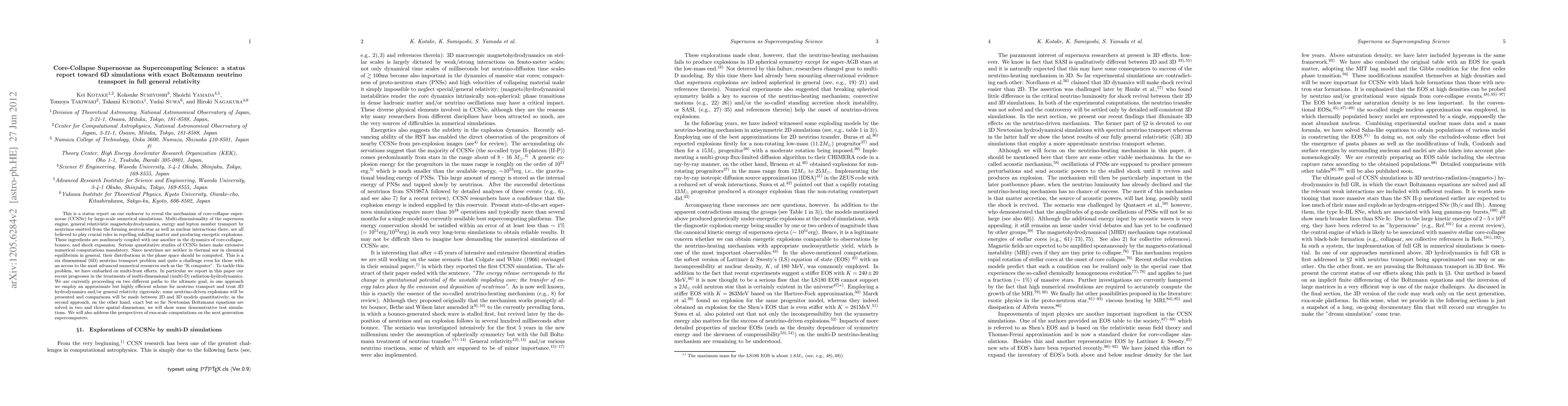 This paper reports on efforts to simulate core-collapse supernovae using advanced 6D simulations with exact Boltzmann neutrino transport in general relativity. It presents progress in multi-dimensional radiation-hydrodynamics and outlines two approaches: one using an efficient but approximate neutrino transport scheme for 3D models, and another solving exact Boltzmann equations in 2D and 3D, with a view towards exa-scale computations.
