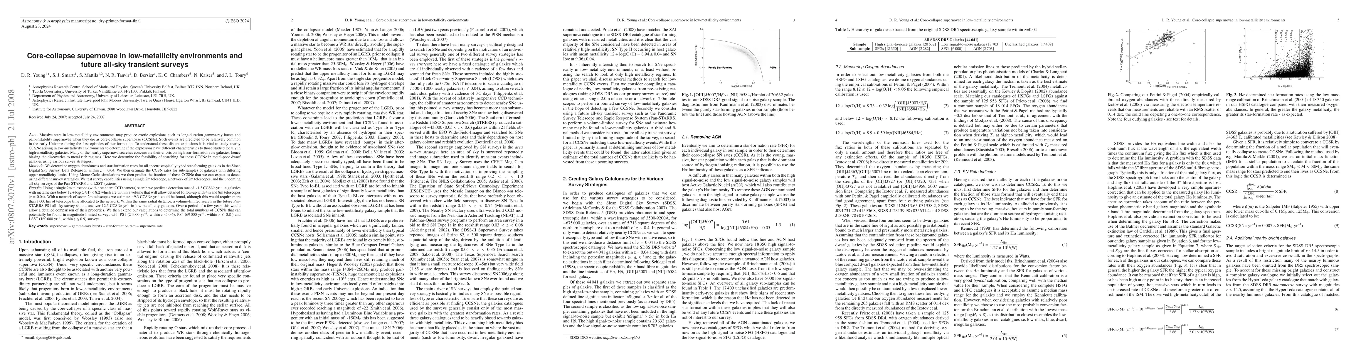 This paper investigates the potential for detecting core-collapse supernovae (CCSNe) in low-metallicity dwarf galaxies using various survey strategies, predicting detection rates for upcoming all-sky transient surveys like Pan-STARRS and LSST. The study estimates that future surveys could detect thousands of CCSNe annually, facilitating detailed comparisons of their properties.