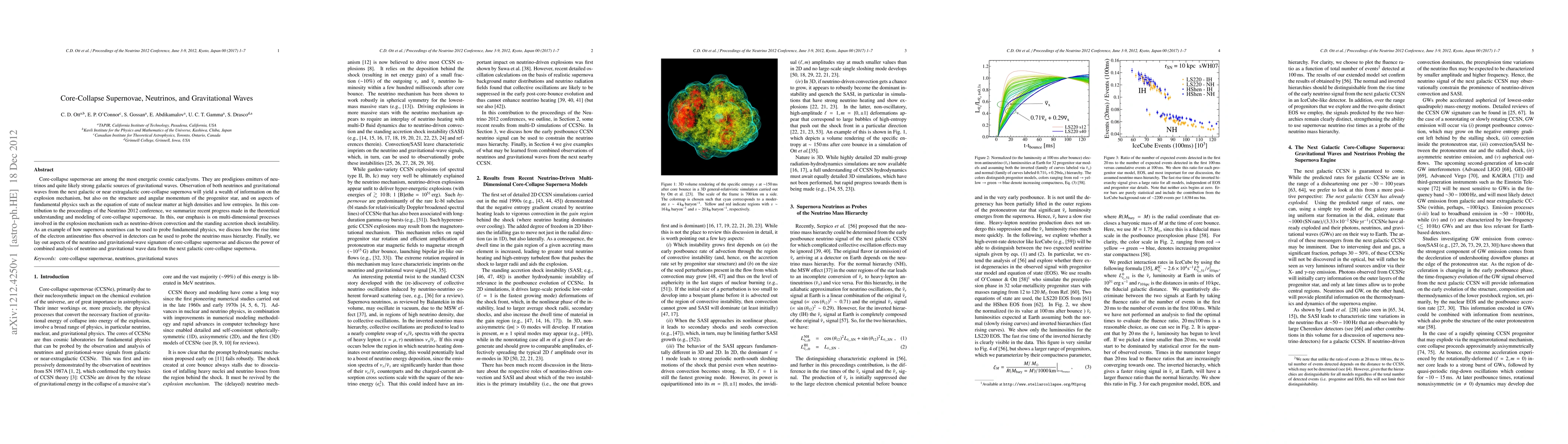Core-collapse supernovae are among the most energetic cosmic cataclysms. They are prodigious emitters of neutrinos and quite likely strong galactic sources of gravitational waves. Observation of both neutrinos and gravitational waves from the next galactic or near extragalactic core-collapse supernova will yield a wealth of information on the explosion mechanism, but also on the structure and angular momentum of the progenitor star, and on aspects of fundamental physics such as the equation of state of nuclear matter at high densities and low entropies. In this contribution to the proceedings of the Neutrino 2012 conference, we summarize recent progress made in the theoretical understanding and modeling of core-collapse supernovae. In this, our emphasis is on multi-dimensional processes involved in the explosion mechanism such as neutrino-driven convection and the standing accretion shock instability. As an example of how supernova neutrinos can be used to probe fundamental physics, we discuss how the rise time of the electron antineutrino flux observed in detectors can be used to probe the neutrino mass hierarchy. Finally, we lay out aspects of the neutrino and gravitational-wave signature of core-collapse supernovae and discuss the power of combined analysis of neutrino and gravitational wave data from the next galactic core-collapse supernova.