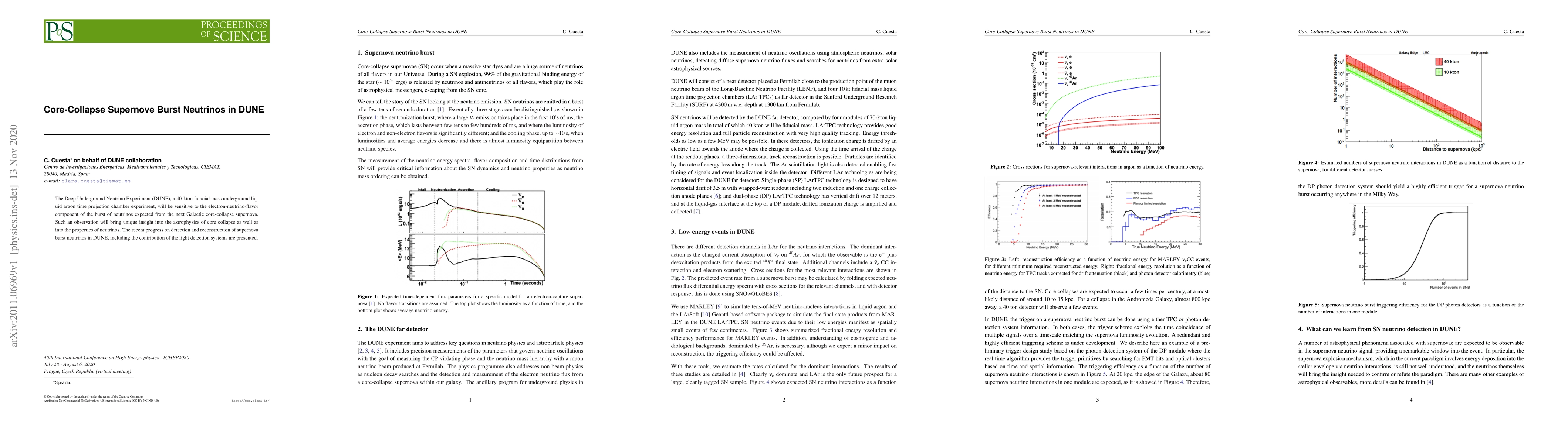 The Deep Underground Neutrino Experiment (DUNE) is poised to detect the electron-neutrino component from the next Galactic core-collapse supernova, offering unprecedented insights into supernova astrophysics and neutrino properties. Recent advancements in DUNE's detection and reconstruction techniques, including light detection systems, are enhancing its capability to observe these neutrinos.
