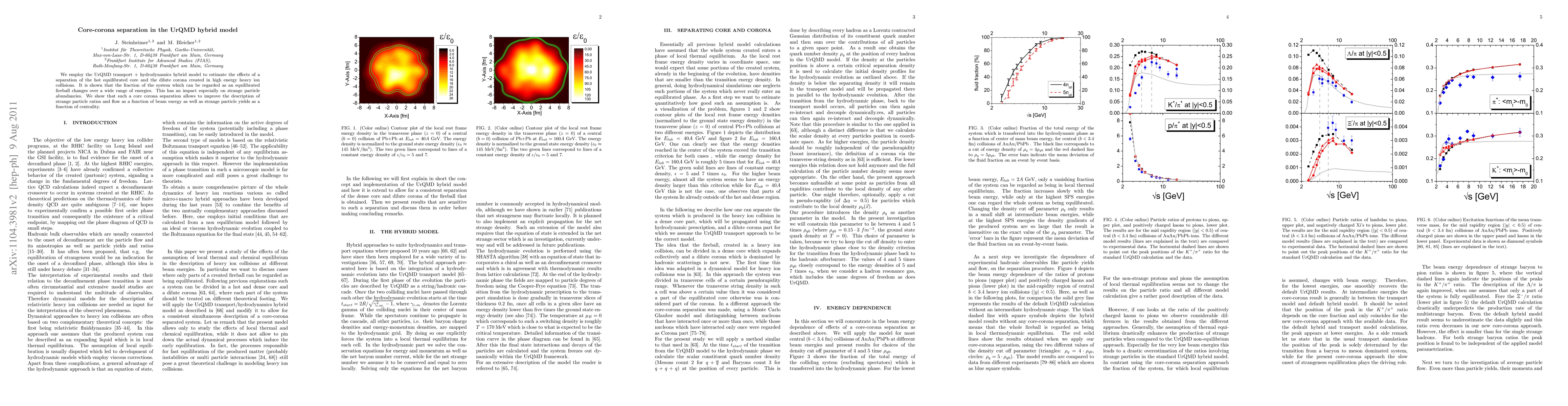 The UrQMD hybrid model demonstrates that separating the core and corona in high energy heavy ion collisions affects the equilibration process, impacting strange particle abundances. This separation enhances the description of strange particle ratios, flow, and yields relative to beam energy and collision centrality.