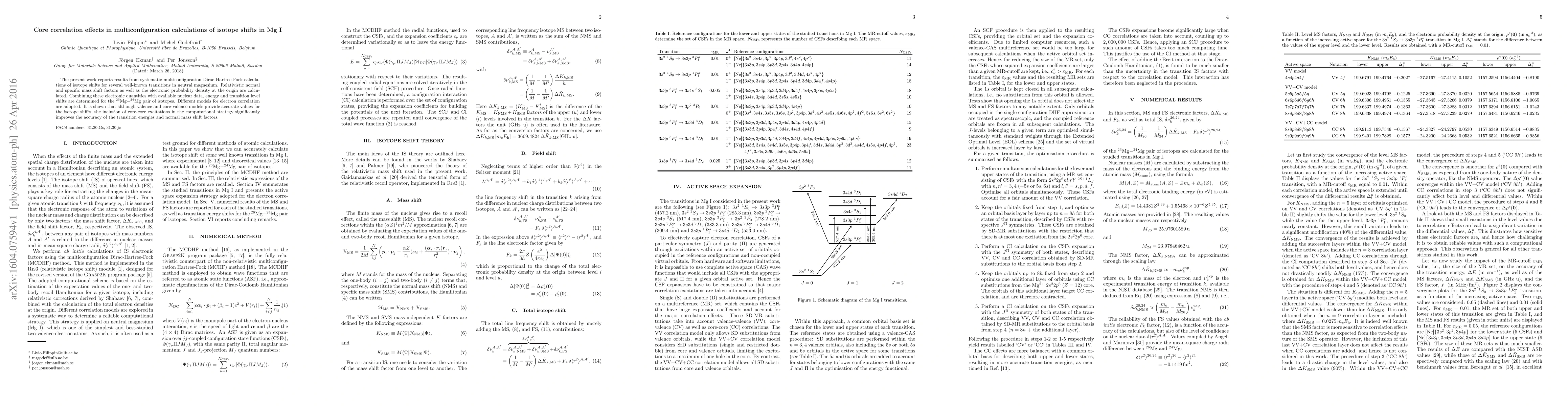 This study systematically investigates isotope shifts in neutral magnesium using multiconfiguration Dirac-Hartree-Fock calculations, revealing that incorporating core-core excitations significantly enhances the accuracy of transition energies and normal mass shift factors compared to valence and core-valence models.