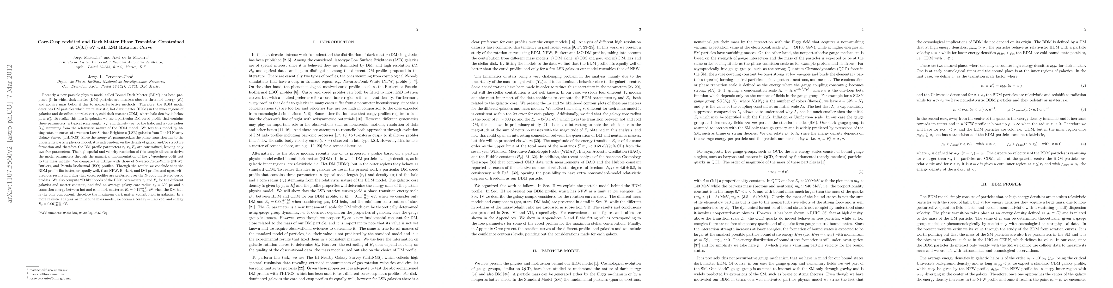 Recently a new particle physics model called Bound Dark Matter (BDM) has been proposed in which dark matter (DM) particles are massless above a threshold energy (Ec) and acquire mass below it due to nonperturbative methods. Therefore, the BDM model describes DM particles which are relativistic, hot dark matter, in the inner regions of galaxies and describes nonrelativistic, cold dark matter, where halo density is below rho_c = Ec^4. To realize this idea in galaxies we use a particular DM cored profile that contains three parameters: a scale length (rs) and density (rho_0) of the halo, and a core radius (rc) stemming from the relativistic nature of the BDM model. We test this model by fitting rotation curves of seventeen Low Surface Brightness galaxies from The HI Nearby Galaxy Survey (THINGS). Since the energy Ec parameterizes the phase transition due to the underlying particle physics model, it is independent on the details of galaxy or structure formation and therefore the DM profile parameters rs, rc, Ec are constrained, leaving only two free parameters. The high spatial and velocity resolution of this sample allows to derive the model parameters through the numerical implementation of the chi^2-goodness-of-fit test to the mass models. We compare the fittings with those of Navarro-Frenk-White (NFW), Burkert, and Pseudo-Isothermal (ISO) profiles. Through the results we conclude that the BDM profile fits better, or equally well, than NFW, Burkert, and ISO profiles and agree with previous results implying that cored profiles are preferred over the N-body motivated cuspy profile. We also compute 2D likelihoods of the BDM parameters rc and Ec for the different galaxies and matter contents, and find an average galaxy core radius rc=300 pc and a transition energy Ec = 0.11 eV when the DM halo is the only component. In Kroupa mass model, we obtain a core rc=1.48 kpc, and energy Ec=0.06 eV.
