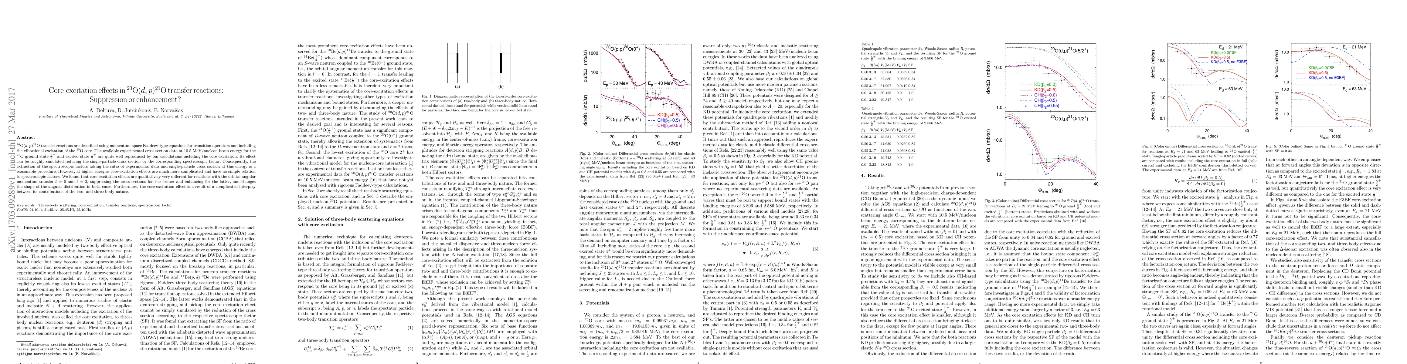 ${}^{20}\mathrm{O}(d,p){}^{21}\mathrm{O}$ transfer reactions are described using momentum-space Faddeev-type equations for transition operators and including the vibrational excitation of the ${}^{20}\mathrm{O}$ core. The available experimental cross section data at 10.5 MeV/nucleon beam energy for the ${}^{21}\mathrm{O}$ ground state $\frac52^+$ and excited state $\frac12^+$ are quite well reproduced by our calculations including the core excitation. Its effect can be roughly simulated reducing the single-particle cross section by the corresponding spectroscopic factor. Consequently, the extraction of the spectroscopic factors taking the ratio of experimental data and single-particle cross section at this energy is a reasonable procedure. However, at higher energies core-excitation effects are much more complicated and have no simple relation to spectroscopic factors. We found that core-excitation effects are qualitatively very different for reactions with the orbital angular momentum transfer $\ell=0$ and $\ell=2$, suppressing the cross sections for the former and enhancing for the latter, and changes the shape of the angular distribution in both cases. Furthermore, the core-excitation effect is a result of a complicated interplay between its contributions of the two- and three-body nature.
