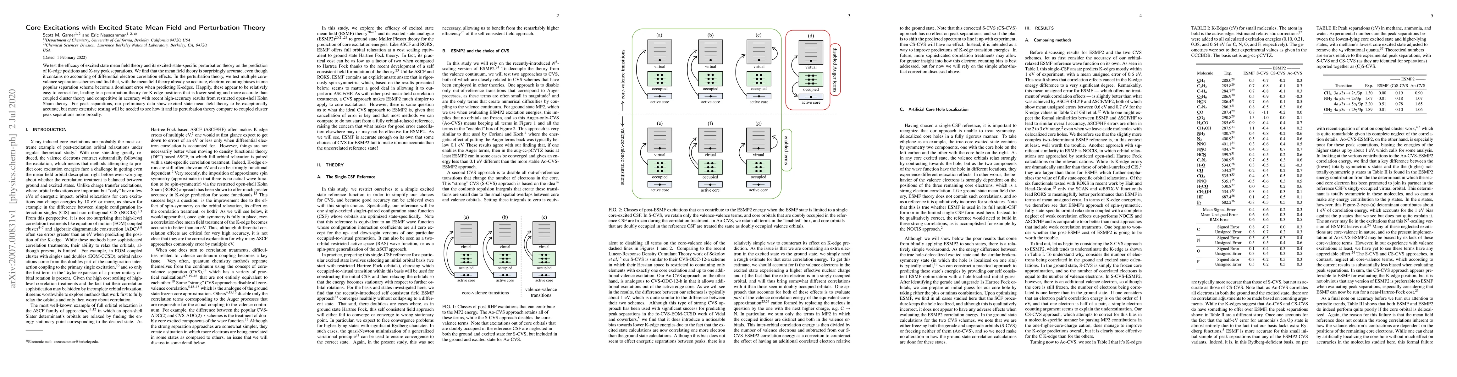 We test the efficacy of excited state mean field theory and its excited-state-specific perturbation theory on the prediction of K-edge positions and X-ray peak separations. We find that the mean field theory is surprisingly accurate, even though it contains no accounting of differential electron correlation effects. In the perturbation theory, we test multiple core-valence separation schemes and find that, with the mean field theory already so accurate, electron-counting biases in one popular separation scheme become a dominant error when predicting K-edges. Happily, these appear to be relatively easy to correct for, leading to a perturbation theory for K-edge positions that is lower scaling and more accurate than coupled cluster theory and competitive in accuracy with recent high-accuracy results from restricted open-shell Kohn Sham theory. For peak separations, our preliminary data show excited state mean field theory to be exceptionally accurate, but more extensive testing will be needed to see how it and its perturbation theory compare to coupled cluster peak separations more broadly.