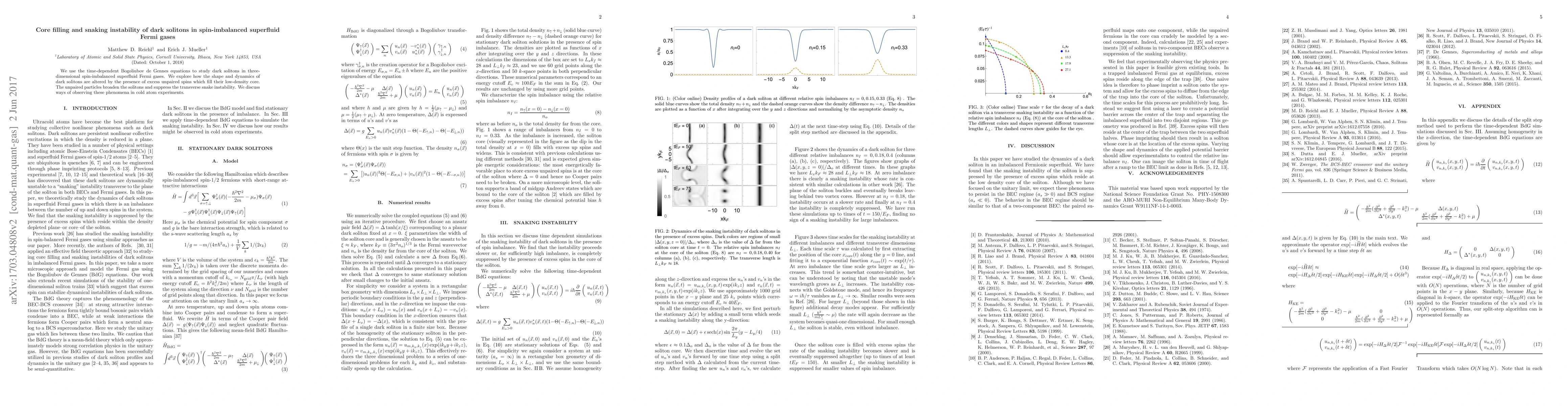 Summary: This paper investigates the dynamics and shape of dark solitons in spin-imbalanced superfluid Fermi gases using time-dependent Bogoliubov de Gennes equations, showing that excess unpaired spins broaden the solitons and mitigate transverse snake instability, with potential experimental observation in cold atom systems.