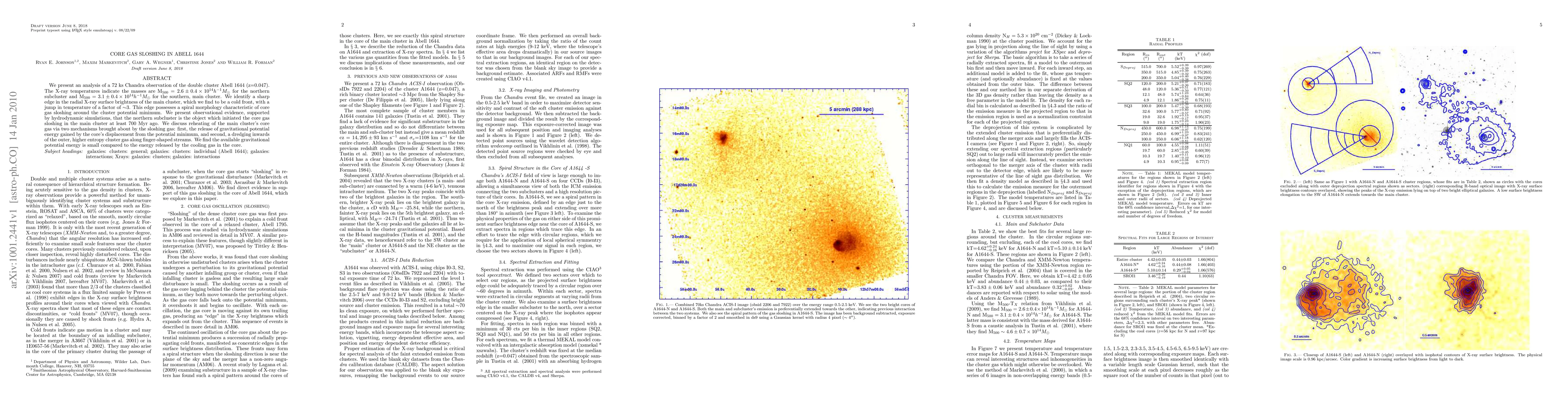 This study analyzes a Chandra observation of Abell 1644, revealing a cold front in the main cluster's X-ray surface brightness indicating core gas sloshing initiated by the northern subcluster. The sloshing reheats the core gas through gravitational potential energy release and inwards movement of higher entropy gas.