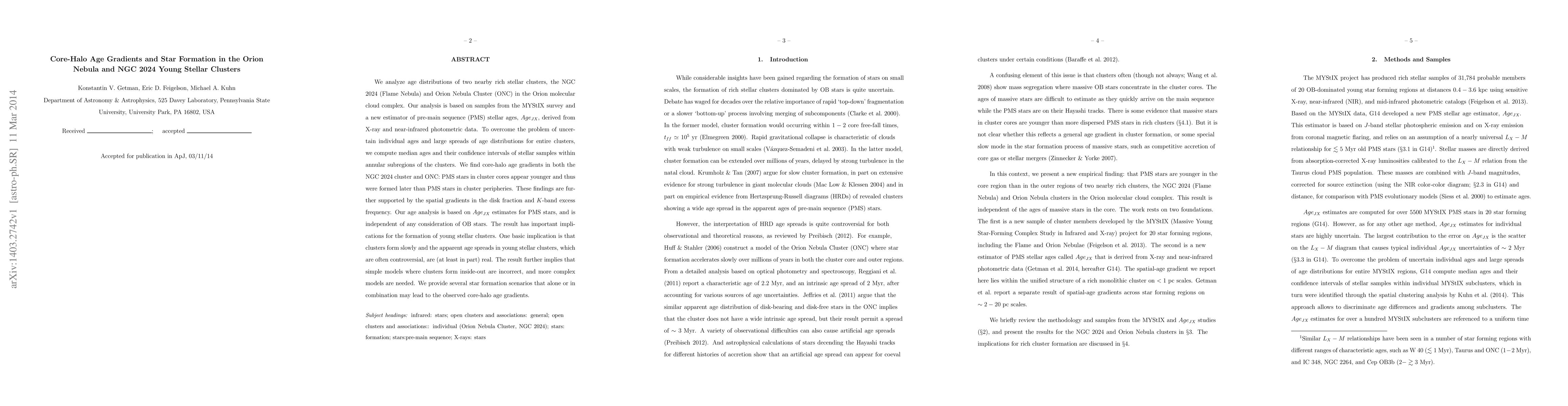 This paper investigates age gradients in the NGC 2024 and Orion Nebula Clusters using new age estimates from X-ray and near-infrared data, revealing younger stars in cluster cores formed later than those in peripheries. The findings suggest that clusters form slowly and that inside-out formation models are inadequate, necessitating more complex scenarios.