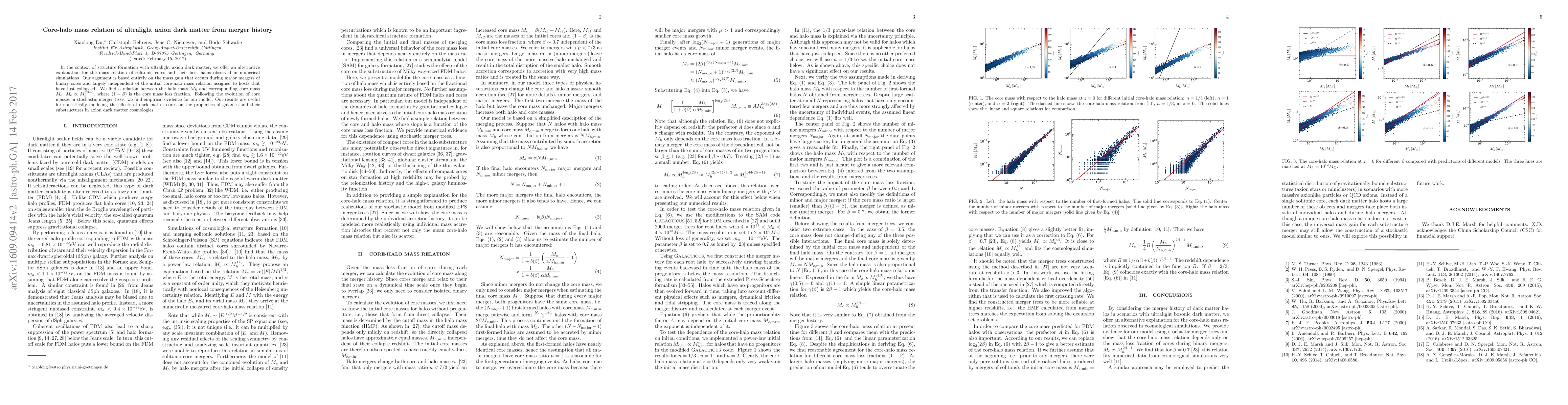 This paper proposes an alternative explanation for the core-halo mass relation in ultralight axion dark matter, based on the mass gain from major mergers of binary cores. It finds a relation $M_c\propto M_h^{2\beta-1}$ and provides empirical evidence through the evolution of core masses in merger histories.