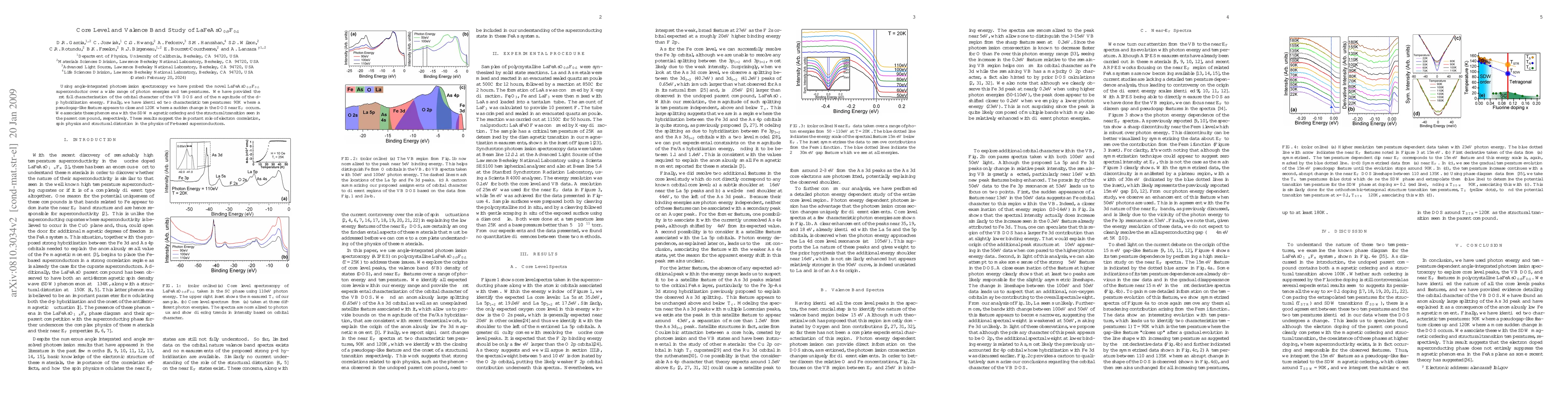 Using angle-integrated photoemission spectroscopy we have probed the novel LaO$_{0.9}$F$_{0.1}$FeAs superconductor over a wide range of photon energies and temperatures. We have provided the first full characterization of the orbital character of the VB DOS and of the magnitude of the d-p hybridization energy. Finally, we have identified two characteristic temperatures: 90K where a pseudogap-like feature appears to close and 120K where a sudden change in the DOS near E$_F$ occurs. We associate these phenomena with the SDW magnetic ordering and the structural transition seen in the parent compound, respectively. These results suggest the important role of electron correlation, spin physics and structural distortion in the physics of Fe-based superconductors.