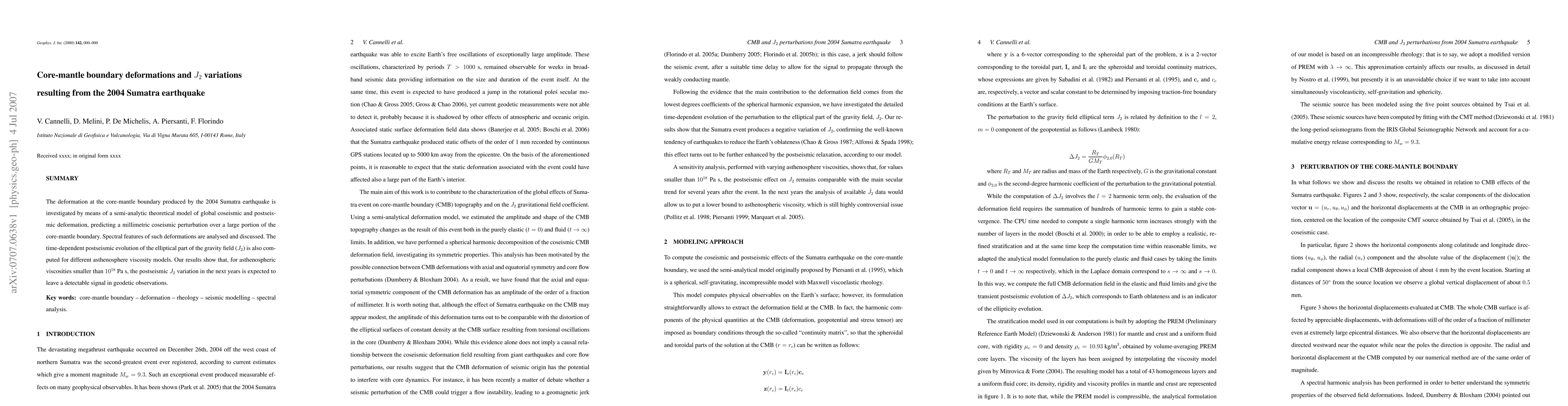 The 2004 Sumatra earthquake caused millimetric deformations at the core-mantle boundary, producing detectable J2 variations in gravity fields for years to come.