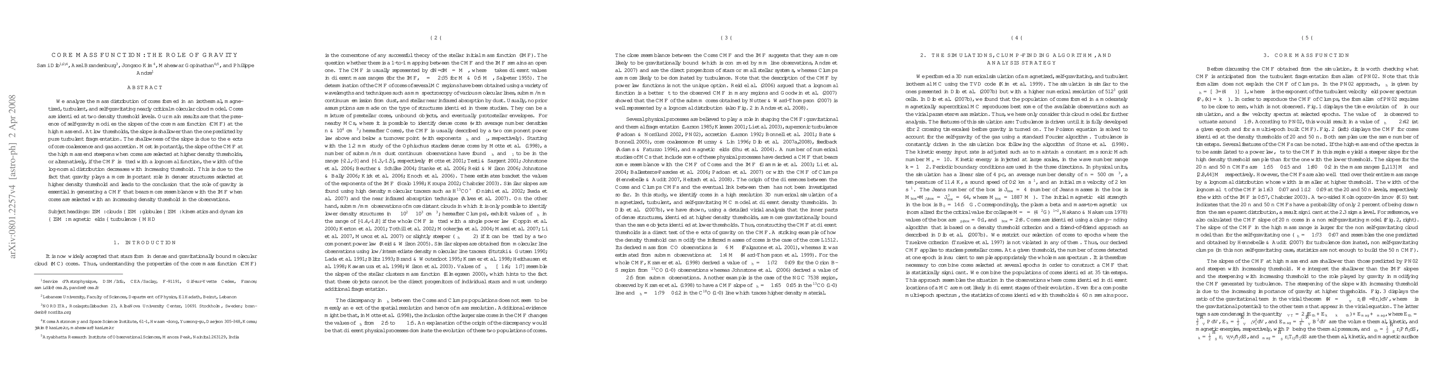 We analyze the mass distribution of cores formed in an isothermal, magnetized, turbulent, and self-gravitating nearly critical molecular cloud model. Cores are identified at two density threshold levels. Our main results are that the presence of self-gravity modifies the slopes of the core mass function (CMF) at the high mass end. At low thresholds, the slope is shallower than the one predicted by pure turbulent fragmentation. The shallowness of the slope is due to the effects of core coalescence and gas accretion. Most importantly, the slope of the CMF at the high mass end steepens when cores are selected at higher density thresholds, or alternatively, if the CMF is fitted with a log-normal function, the width of the lognormal distribution decreases with increasing threshold. This is due to the fact that gravity plays a more important role in denser structures selected at higher density threshold and leads to the conclusion that the role of gravity is essential in generating a CMF that bears more resemblance with the IMF when cores are selected with an increasing density threshold in the observations.