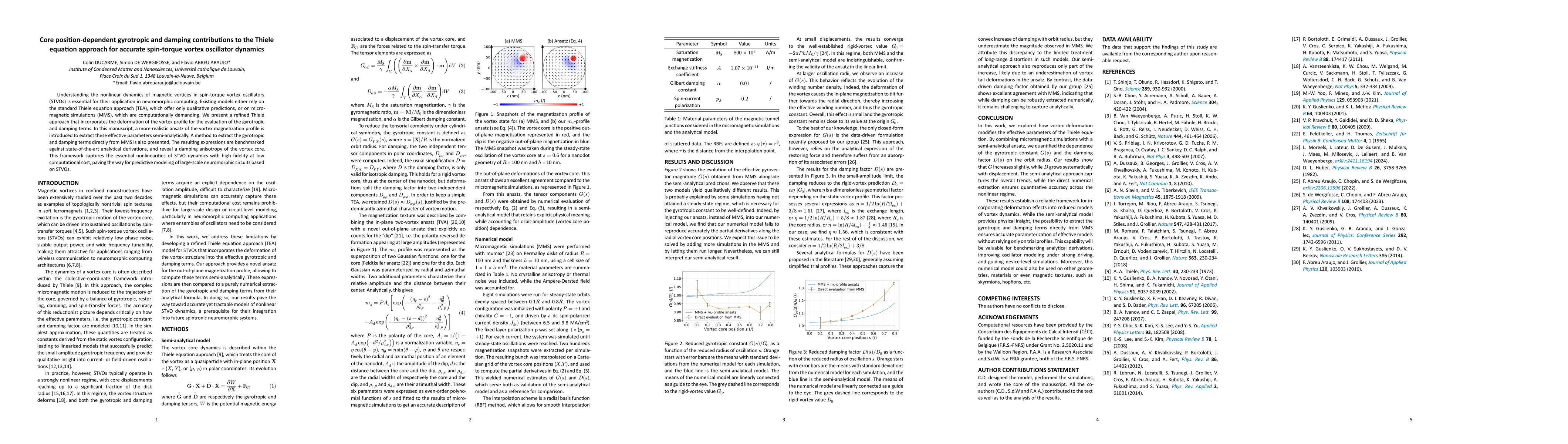 A semi-analytical model that retains explicit physical meaning while accounting for orbit-amplitude (vortex core position) dependence, along with a method to extract gyrotropic and damping terms directly from MMS.