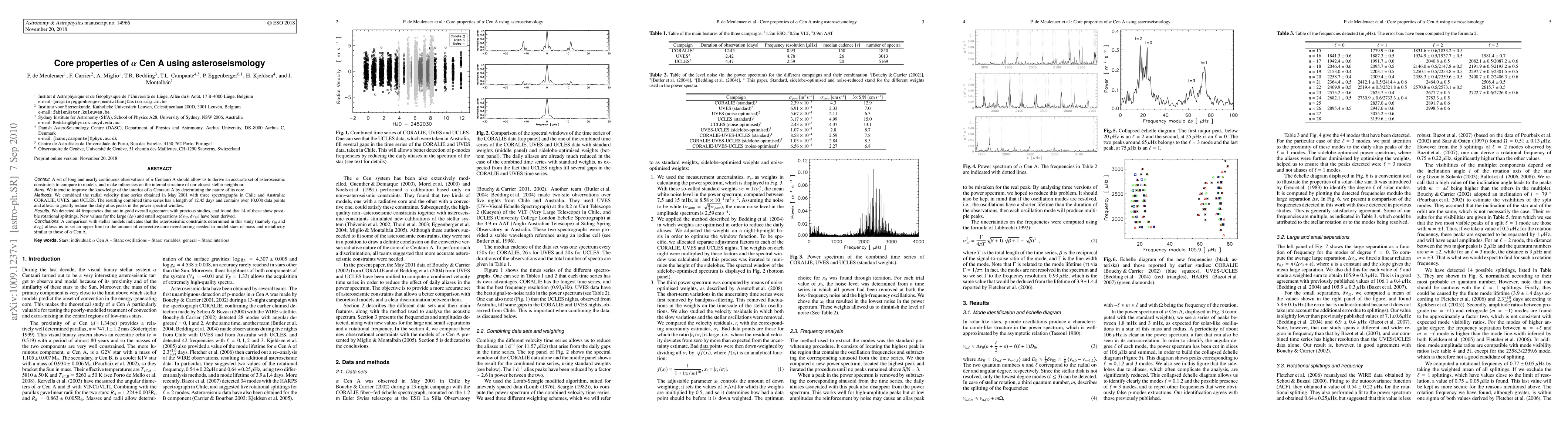 This paper uses asteroseismology from long, continuous observations of alpha Centauri A to derive accurate constraints on its internal structure, detecting 44 frequencies and identifying 14 with possible rotational splittings. The study sets an upper limit on convective-core overshooting for stars similar to alpha Cen A, improving our understanding of its core properties.