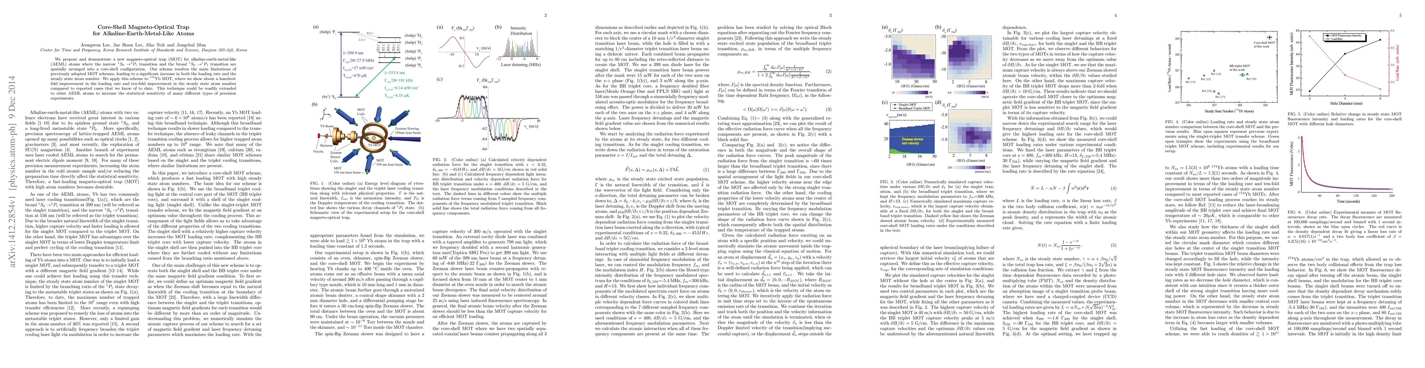This paper proposes a novel core-shell magneto-optical trap (MOT) design for alkaline-earth-metal-like atoms, significantly improving the loading rate and steady state atom number by spatially arranging the atom's narrow and broad transitions. Demonstrated on $^{174}$Yb, the new MOT shows a hundred-fold increase in loading rate and ten-fold increase in atom number compared to previous methods.