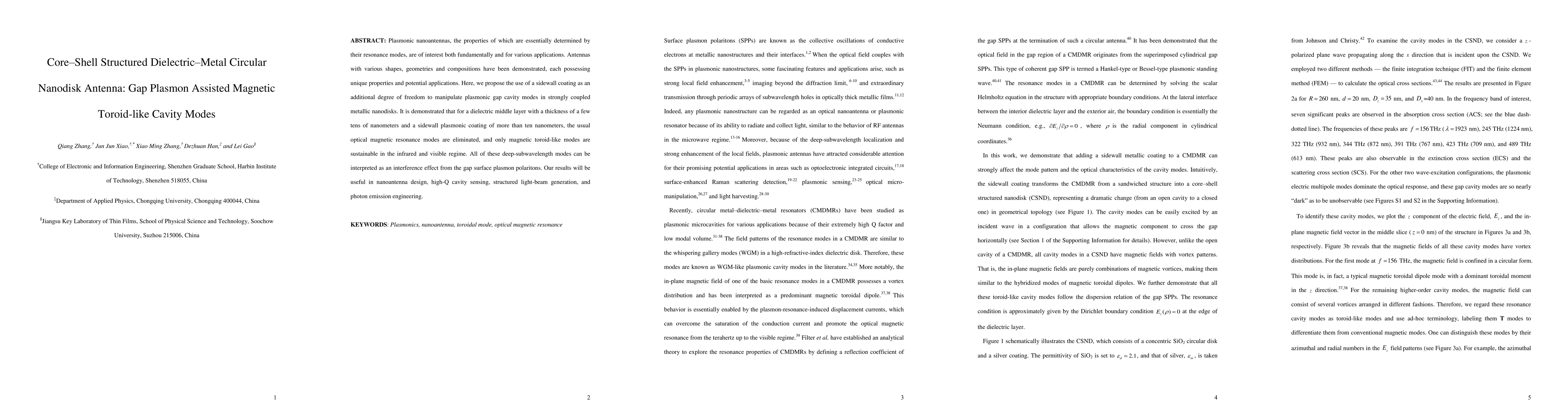 Plasmonic nanoantennas, the properties of which are essentially determined by their resonance modes, are of interest both fundamentally and for various applications. Antennas with various shapes, geometries and compositions have been demonstrated, each possessing unique properties and potential applications. Here, we propose the use of a sidewall coating as an additional degree of freedom to manipulate plasmonic gap cavity modes in strongly coupled metallic nanodisks. It is demonstrated that for a dielectric middle layer with a thickness of a few tens of nanometers and a sidewall plasmonic coating of more than ten nanometers, the usual optical magnetic resonance modes are eliminated, and only magnetic toroid-like modes are sustainable in the infrared and visible regime. All of these deep-subwavelength modes can be interpreted as an interference effect from the gap surface plasmon polaritons. Our results will be useful in nanoantenna design, high-Q cavity sensing, structured light-beam generation, and photon emission engineering.