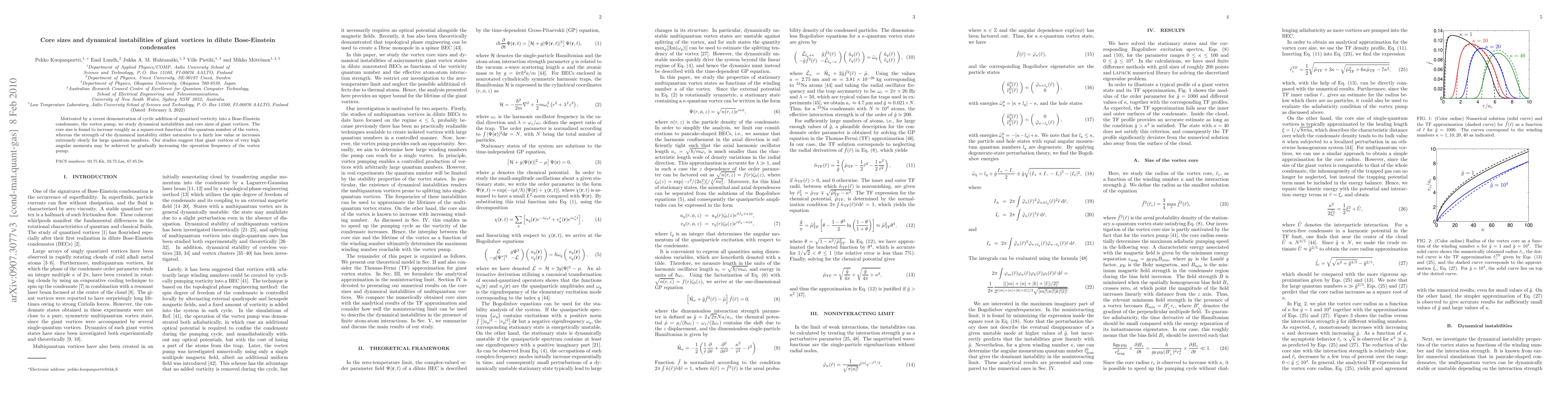 Research investigates giant vortices in dilute Bose-Einstein condensates, finding core sizes increase as a square-root function of quantum number, while dynamical instability either saturates or increases slowly with high angular momenta.