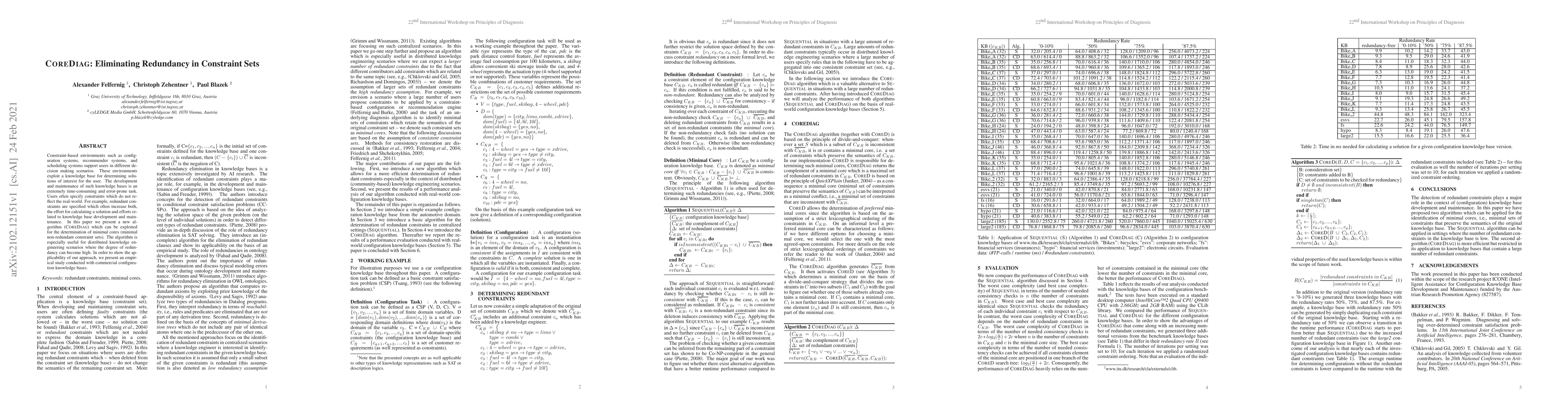 Constraint-based environments such as configuration systems, recommender systems, and scheduling systems support users in different decision making scenarios. These environments exploit a knowledge base for determining solutions of interest for the user. The development and maintenance of such knowledge bases is an extremely time-consuming and error-prone task. Users often specify constraints which do not reflect the real-world. For example, redundant constraints are specified which often increase both, the effort for calculating a solution and efforts related to knowledge base development and maintenance. In this paper we present a new algorithm (CoreDiag) which can be exploited for the determination of minimal cores (minimal non-redundant constraint sets). The algorithm is especially useful for distributed knowledge engineering scenarios where the degree of redundancy can become high. In order to show the applicability of our approach, we present an empirical study conducted with commercial configuration knowledge bases.