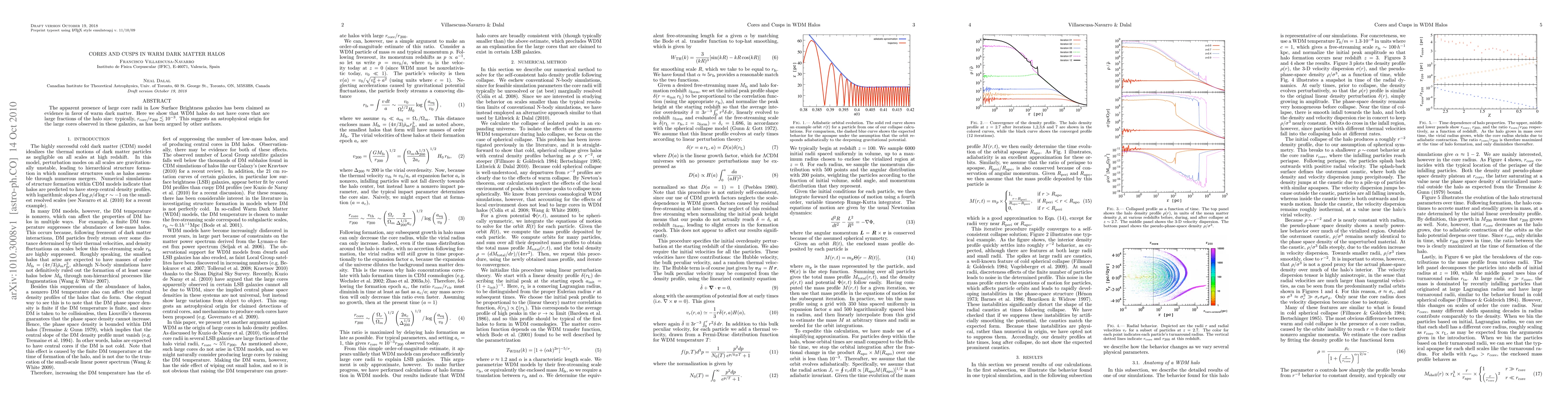 The paper presents detailed spherical collapse simulations of WDM halos, providing an in-depth analysis of core radii and their dependence on various physical parameters.