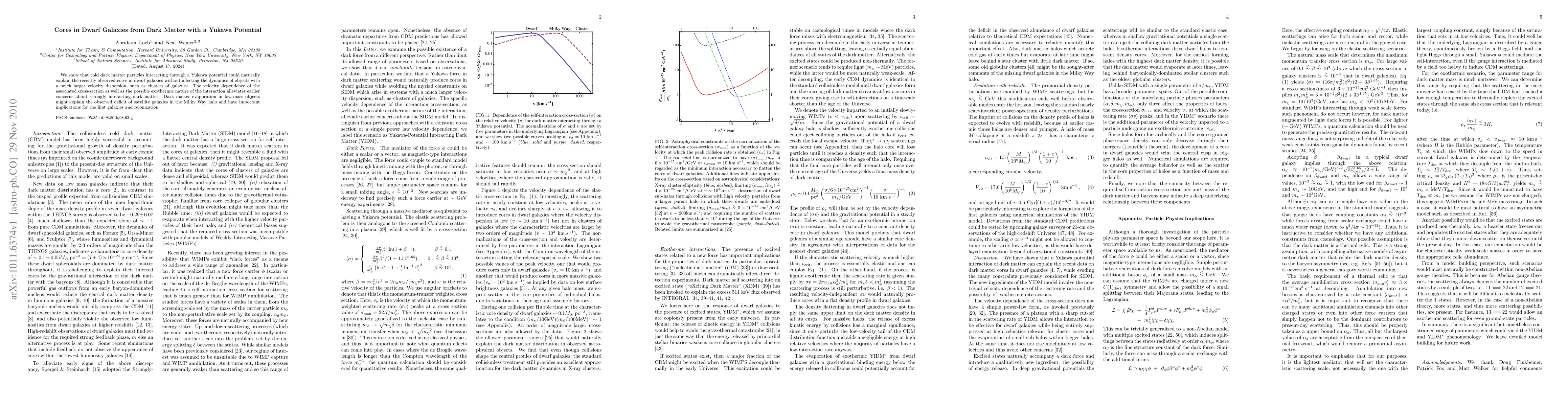 We show that cold dark matter particles interacting through a Yukawa potential could naturally explain the recently observed cores in dwarf galaxies without affecting the dynamics of objects with a much larger velocity dispersion, such as clusters of galaxies. The velocity dependence of the associated cross-section as well as the possible exothermic nature of the interaction alleviates earlier concerns about strongly interacting dark matter. Dark matter evaporation in low-mass objects might explain the observed deficit of satellite galaxies in the Milky Way halo and have important implications for the first galaxies and reionization.