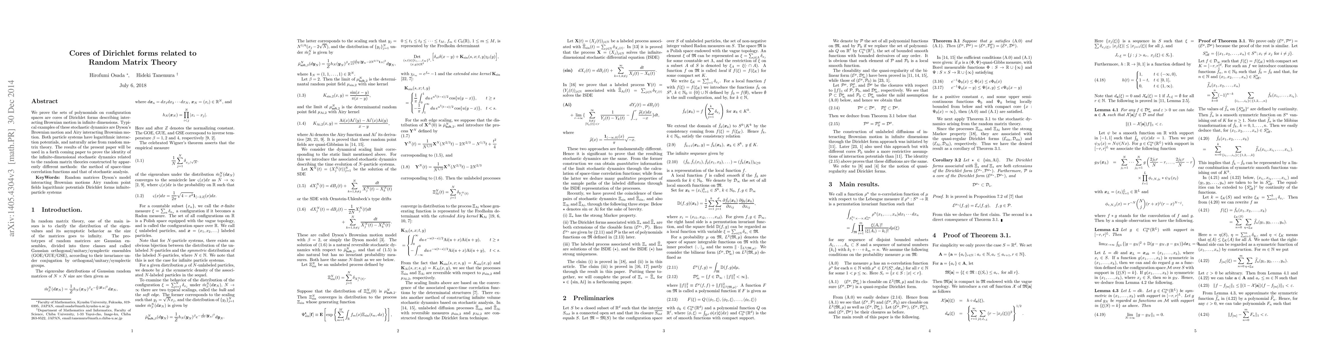 This paper proves that sets of polynomials on configuration spaces serve as cores for Dirichlet forms associated with interacting Brownian motion in infinite dimensions, exemplified by Dyson's and Airy processes. These findings will be pivotal in establishing the equivalence of stochastic dynamics from random matrix theory, derived via different analytical methods.