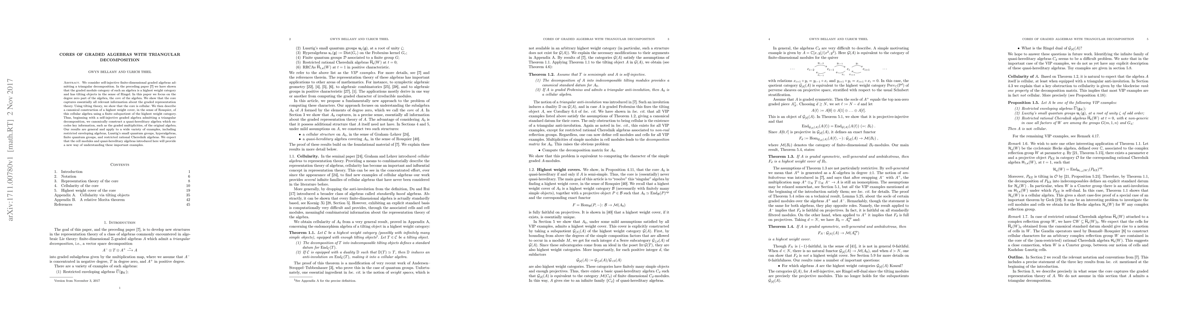 We consider self-injective finite-dimensional graded algebras admitting a triangular decomposition. In a preceding paper, we have shown that the graded module category of such an algebra is a highest weight category and has tilting objects in the sense of Ringel. In this paper we focus on the degree zero part of the algebra, the core of the algebra. We show that the core captures essentially all relevant information about the graded representation theory. Using tilting theory, we show that the core is cellular. We then describe a canonical construction of a highest weight cover, in the sense of Rouquier, of this cellular algebra using a finite subquotient of the highest weight category. Thus, beginning with a self-injective graded algebra admitting a triangular decomposition, we canonically construct a quasi-hereditary algebra which encodes key information, such as graded multiplicities, of the original algebra. Our results are general and apply to a wide variety of examples, including restricted enveloping algebras, Lusztig's small quantum groups, hyperalgebras, finite quantum groups, and restricted rational Cherednik algebras. We expect that the cell modules and quasi-hereditary algebras introduced here will provide a new way of understanding these important examples.