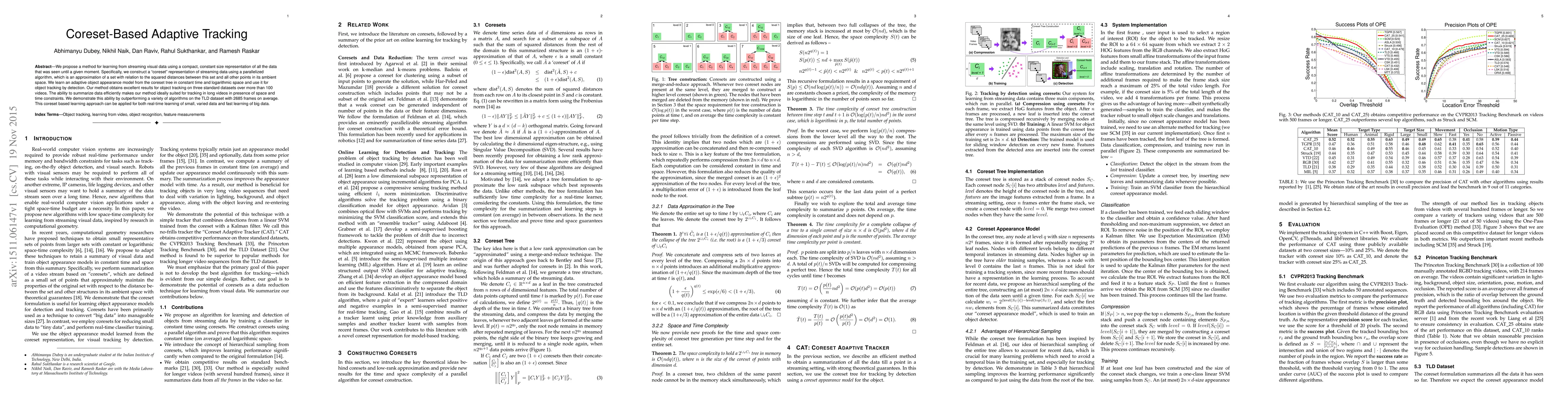 We propose a method for learning from streaming visual data using a compact, constant size representation of all the data that was seen until a given moment. Specifically, we construct a 'coreset' representation of streaming data using a parallelized algorithm, which is an approximation of a set with relation to the squared distances between this set and all other points in its ambient space. We learn an adaptive object appearance model from the coreset tree in constant time and logarithmic space and use it for object tracking by detection. Our method obtains excellent results for object tracking on three standard datasets over more than 100 videos. The ability to summarize data efficiently makes our method ideally suited for tracking in long videos in presence of space and time constraints. We demonstrate this ability by outperforming a variety of algorithms on the TLD dataset with 2685 frames on average. This coreset based learning approach can be applied for both real-time learning of small, varied data and fast learning of big data.