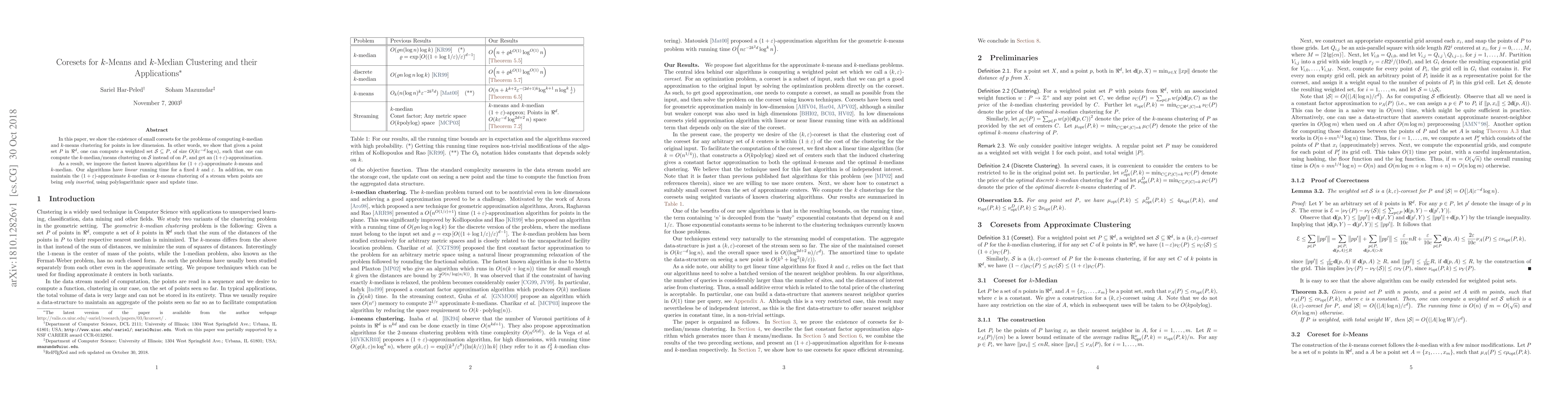 The paper introduces novel coreset construction techniques and algorithms for $k$-means and $k$-median clustering, improving upon existing methods in terms of efficiency and applicability.