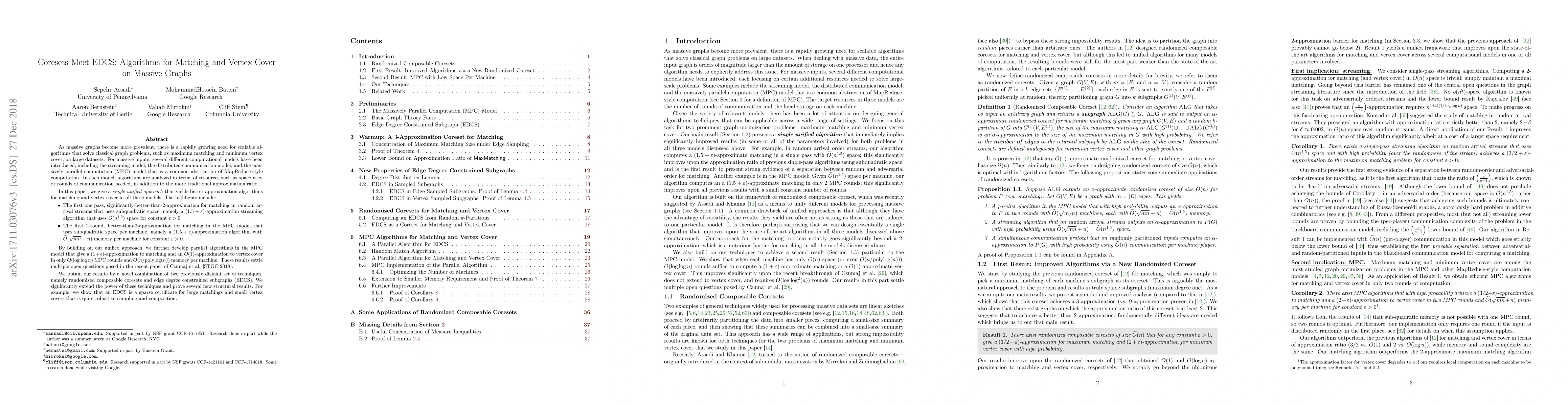 This paper presents a unified approach to scalable algorithms for solving maximum matching and minimum vertex cover on massive graphs across various computational models, including streaming, distributed communication, and MPC. Key results include a $(1.5+\epsilon)$-approximation streaming algorithm using subquadratic space and a 2-round, better-than-2-approximation MPC algorithm with subquadratic space per machine.