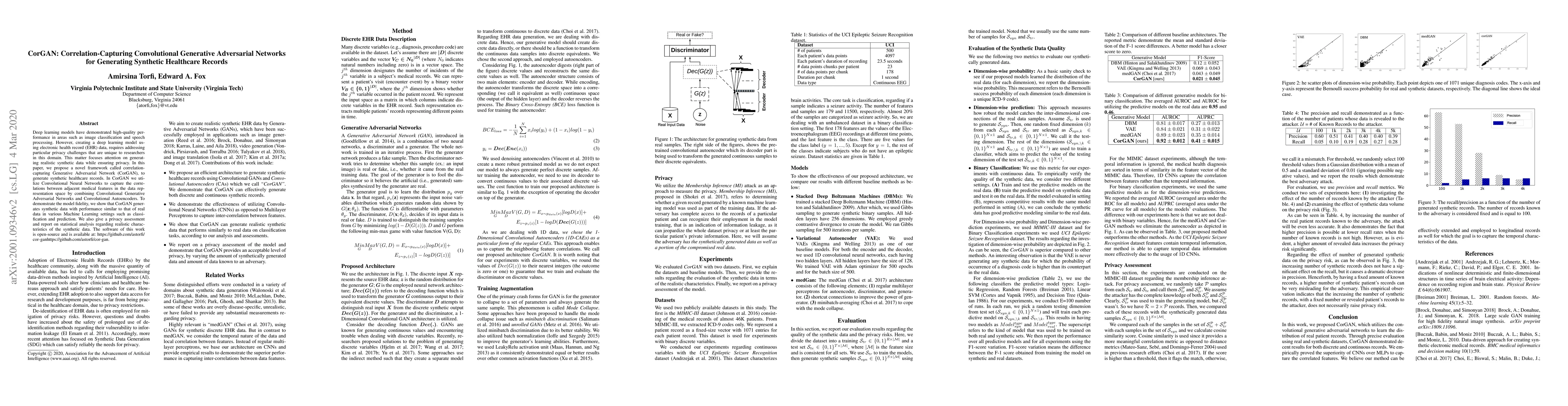 This paper introduces CorGAN, a novel framework using Convolutional Generative Adversarial Networks to generate synthetic healthcare records while preserving patient privacy. CorGAN combines Convolutional Neural Networks to capture correlations in medical data, producing realistic synthetic data that performs similarly to real data in machine learning tasks.