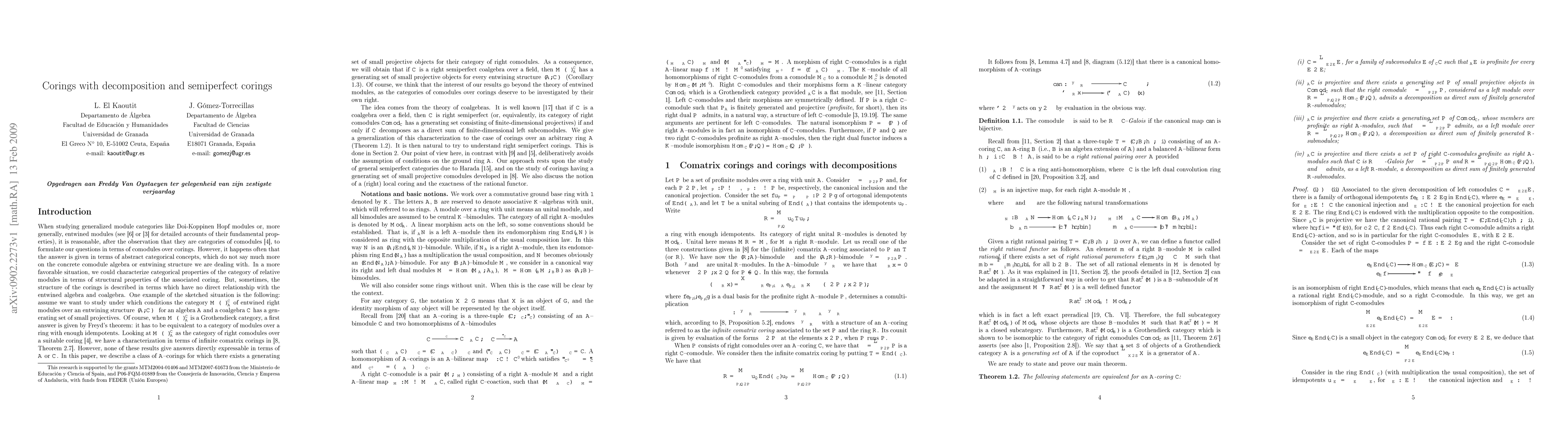 This paper characterizes corings that decompose into finitely generated left comodules, showing that such corings are Galois infinite comatrix corings. It also proves that the associated rational functor is exact for right semiperfect corings with specific structural properties.