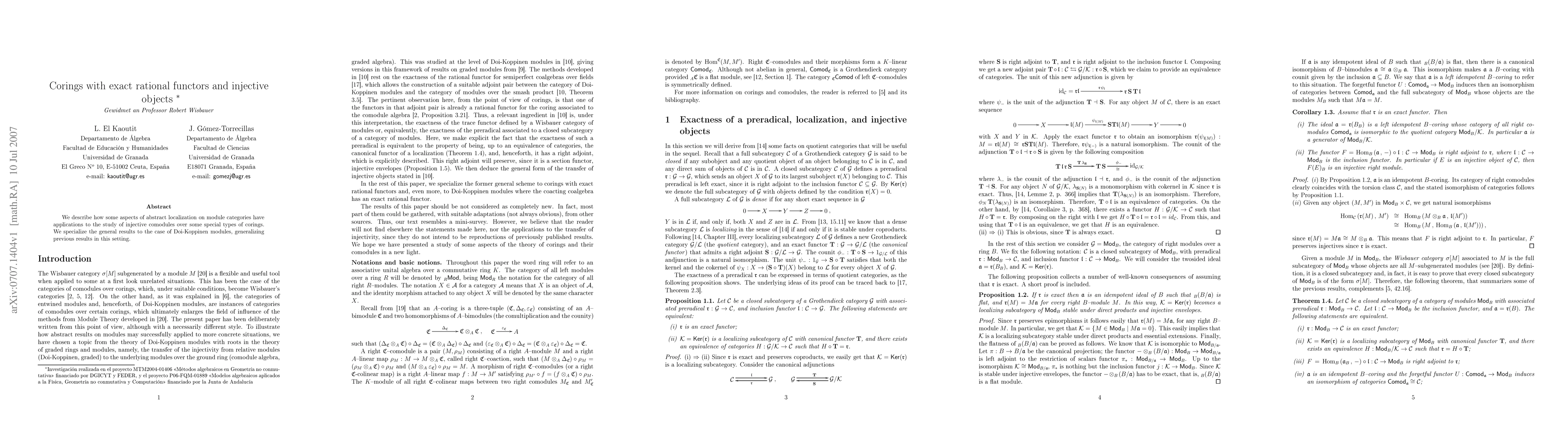 We describe how some aspects of abstract localization on module categories have applications to the study of injective comodules over some special types of corings. We specialize the general results to the case of Doi-Koppinen modules, generalizing previous results in this setting.