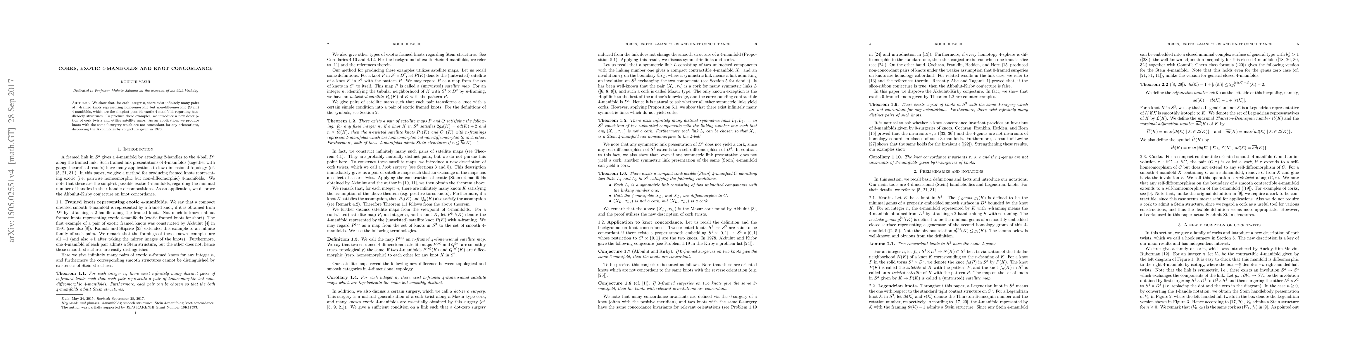 This paper demonstrates the existence of infinitely many pairs of n-framed knots that represent homeomorphic but non-diffeomorphic exotic 4-manifolds, using new descriptions of cork twists and satellite maps. It also disproves the Akbulut-Kirby conjecture by showing knots with the same 0-surgery that are not concordant.