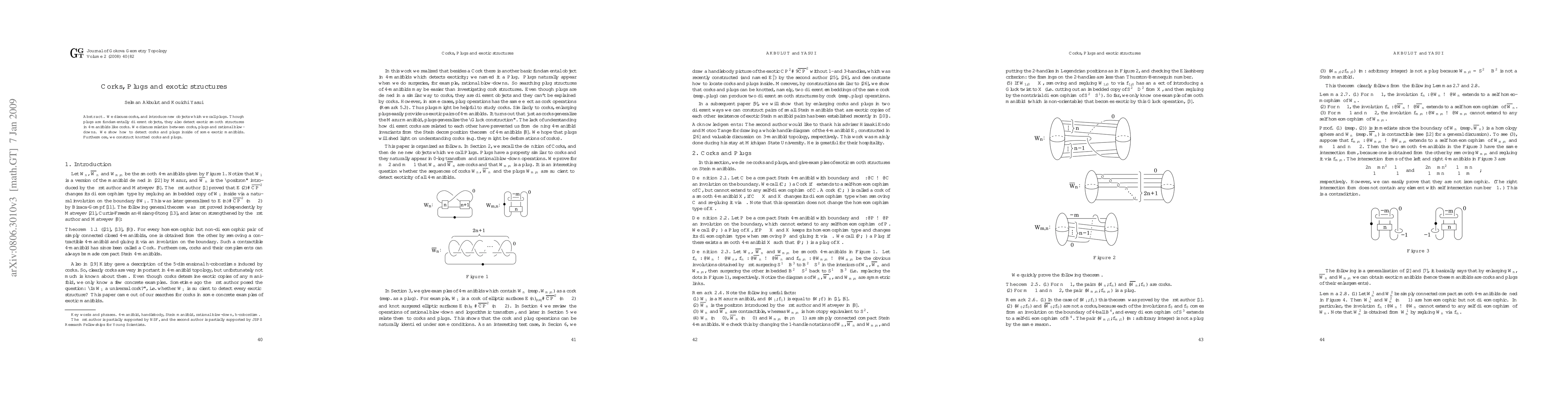 This paper introduces "plugs," a novel concept in smooth 4-manifolds, which, despite their fundamental differences, similarly detect exotic smooth structures like "corks." It explores the relationship between corks, plugs, and rational blow-downs, and demonstrates their detection within exotic manifolds, including the construction of knotted corks and plugs.
