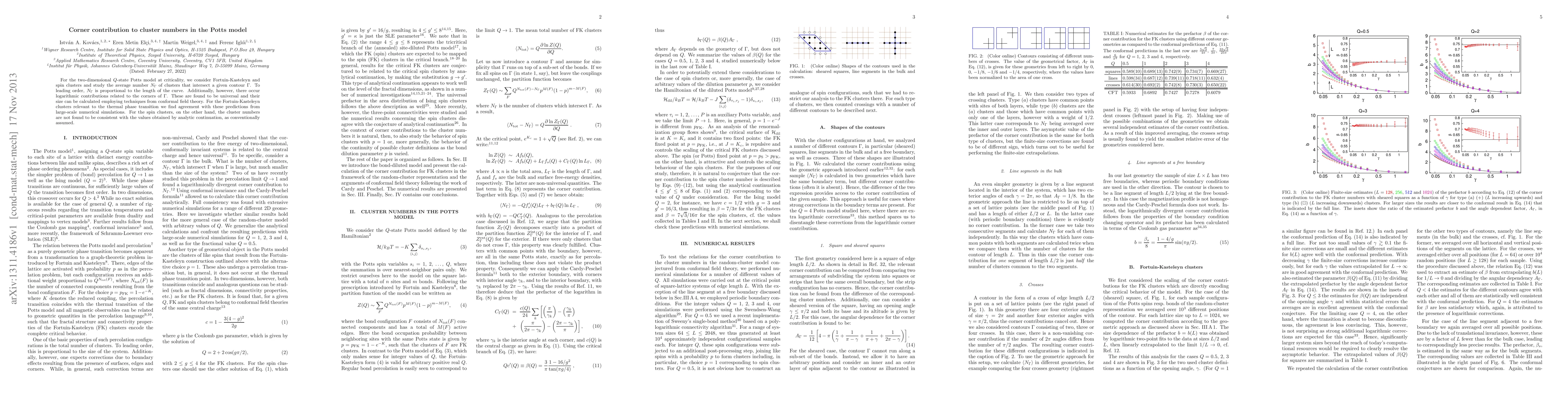 For the two-dimensional Q-state Potts model at criticality, we consider Fortuin-Kasteleyn and spin clusters and study the average number N_Gamma of clusters that intersect a given contour Gamma. To leading order, N_Gamma is proportional to the length of the curve. Additionally, however, there occur logarithmic contributions related to the corners of Gamma. These are found to be universal and their size can be calculated employing techniques from conformal field theory. For the Fortuin-Kasteleyn clusters relevant to the thermal phase transition we find agreement with these predictions from large-scale numerical simulations. For the spin clusters, on the other hand, the cluster numbers are not found to be consistent with the values obtained by analytic continuation, as conventionally assumed.