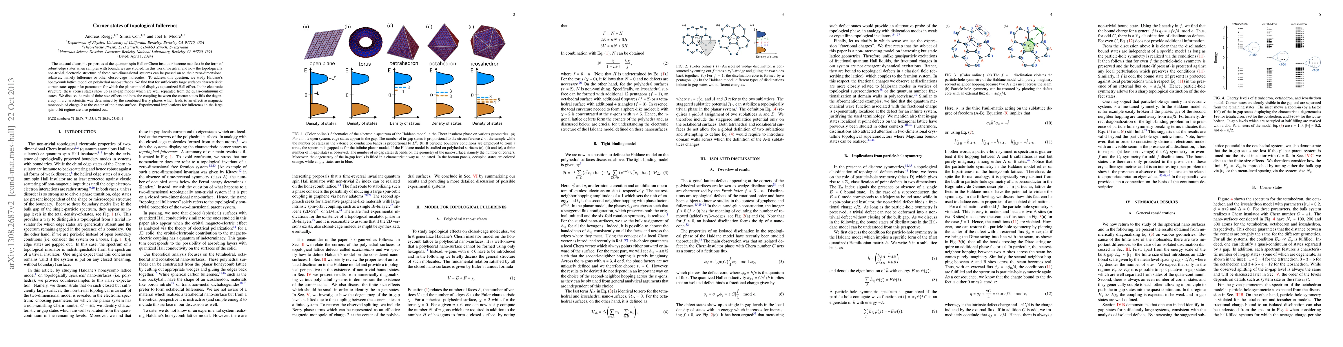 The unusual electronic properties of the quantum spin Hall or Chern insulator become manifest in the form of robust edge states when samples with boundaries are studied. In this work, we ask if and how the topologically non-trivial electronic structure of these two-dimensional systems can be passed on to their zero-dimensional relatives, namely fullerenes or other closed-cage molecules. To address this question, we study Haldane's honeycomb lattice model on polyhedral nano-surfaces. We find that for sufficiently large surfaces characteristic corner states appear for parameters for which the planar model displays a quantized Hall effect. In the electronic structure, these corner states show up as in-gap modes which are well separated from the quasi-continuum of states. We discuss the role of finite size effects and how the coupling between the corner states lifts the degeneracy in a characteristic way determined by the combined Berry phases which leads to an effective magnetic monopole of charge 2 at the center of the nano-surface. Experimental implications for fullerenes in the large spin-orbit regime are also pointed out.