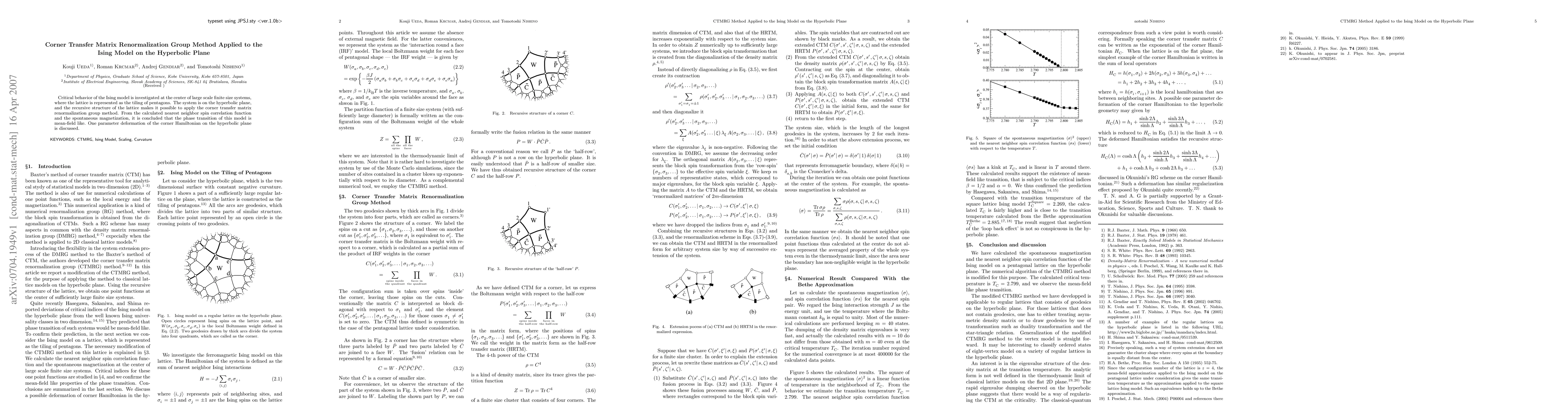 This paper applies the corner transfer matrix renormalization group to the Ising model on the hyperbolic plane, finding mean-field-like phase transition behavior through analysis of spin correlation and spontaneous magnetization. The study also explores one-parameter deformation of the corner Hamiltonian on this hyperbolic lattice.