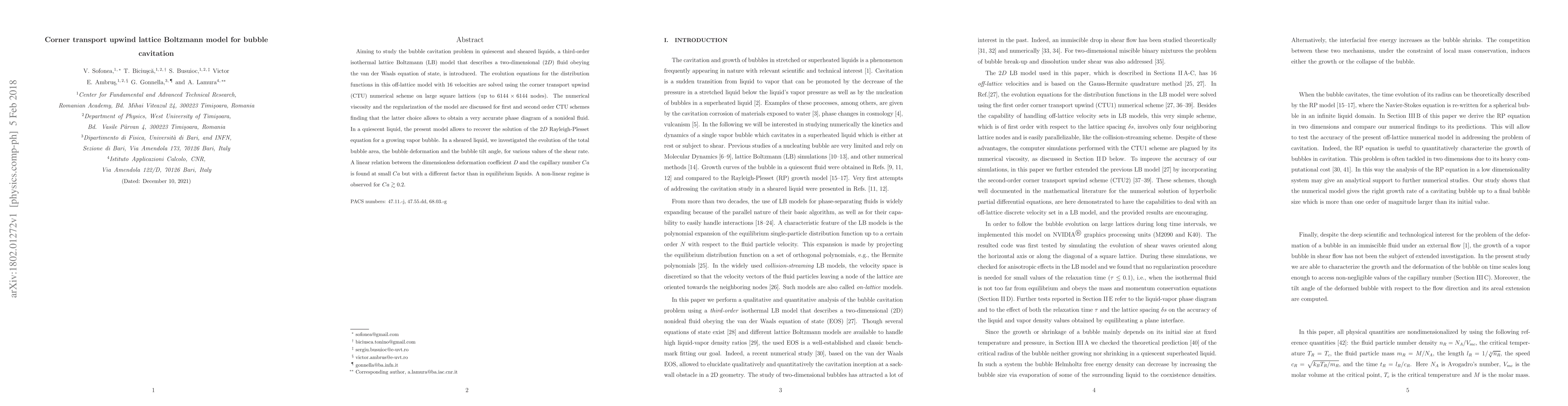 This paper introduces a third-order isothermal lattice Boltzmann model for studying bubble cavitation in quiescent and sheared liquids, employing the corner transport upwind scheme to solve the evolution equations. The model accurately reproduces the Rayleigh-Plesset equation in quiescent conditions and shows a linear deformation relation for small capillary numbers in sheared conditions, transitioning to a non-linear regime at higher values.