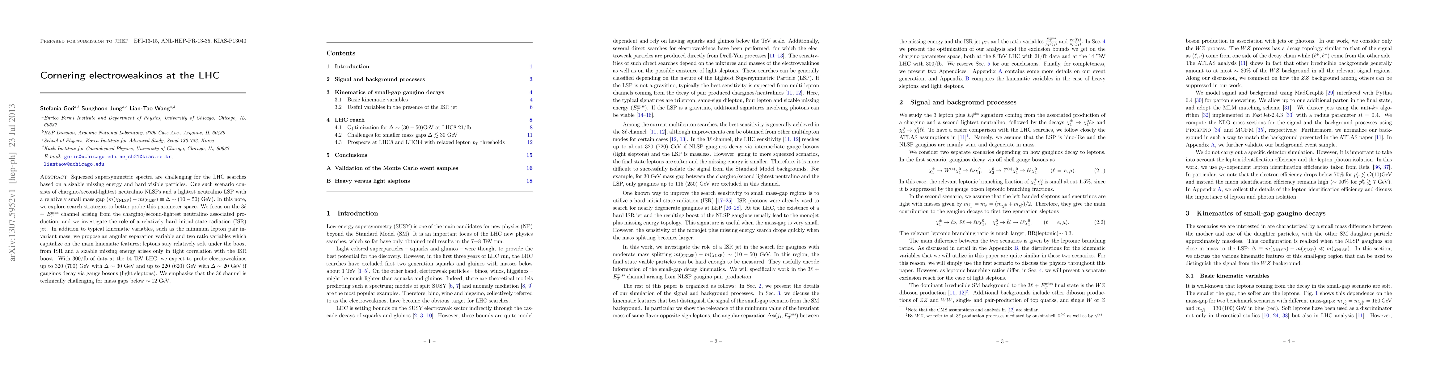 Researchers propose improved search strategies for detecting electroweakinos at the LHC, focusing on a three-lepton channel with missing energy, and expect to probe particles up to 320 GeV with a mass gap of 30 GeV.