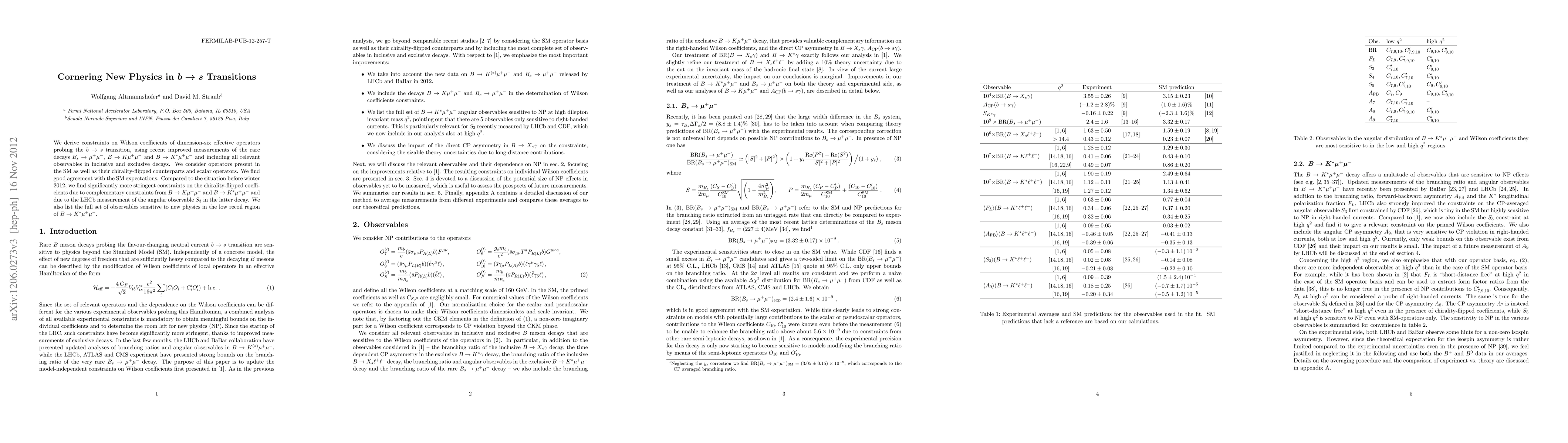 We derive constraints on Wilson coefficients of dimension-six effective operators probing the b --> s transition, using recent improved measurements of the rare decays Bs --> mu+mu-, B --> K mu+mu- and B --> K* mu+mu- and including all relevant observables in inclusive and exclusive decays. We consider operators present in the SM as well as their chirality-flipped counterparts and scalar operators. We find good agreement with the SM expectations. Compared to the situation before winter 2012, we find significantly more stringent constraints on the chirality-flipped coefficients due to complementary constraints from B --> K mu+mu- and B --> K* mu+mu- and due to the LHCb measurement of the angular observable S_3 in the latter decay. We also list the full set of observables sensitive to new physics in the low recoil region of B --> K* mu+mu-.